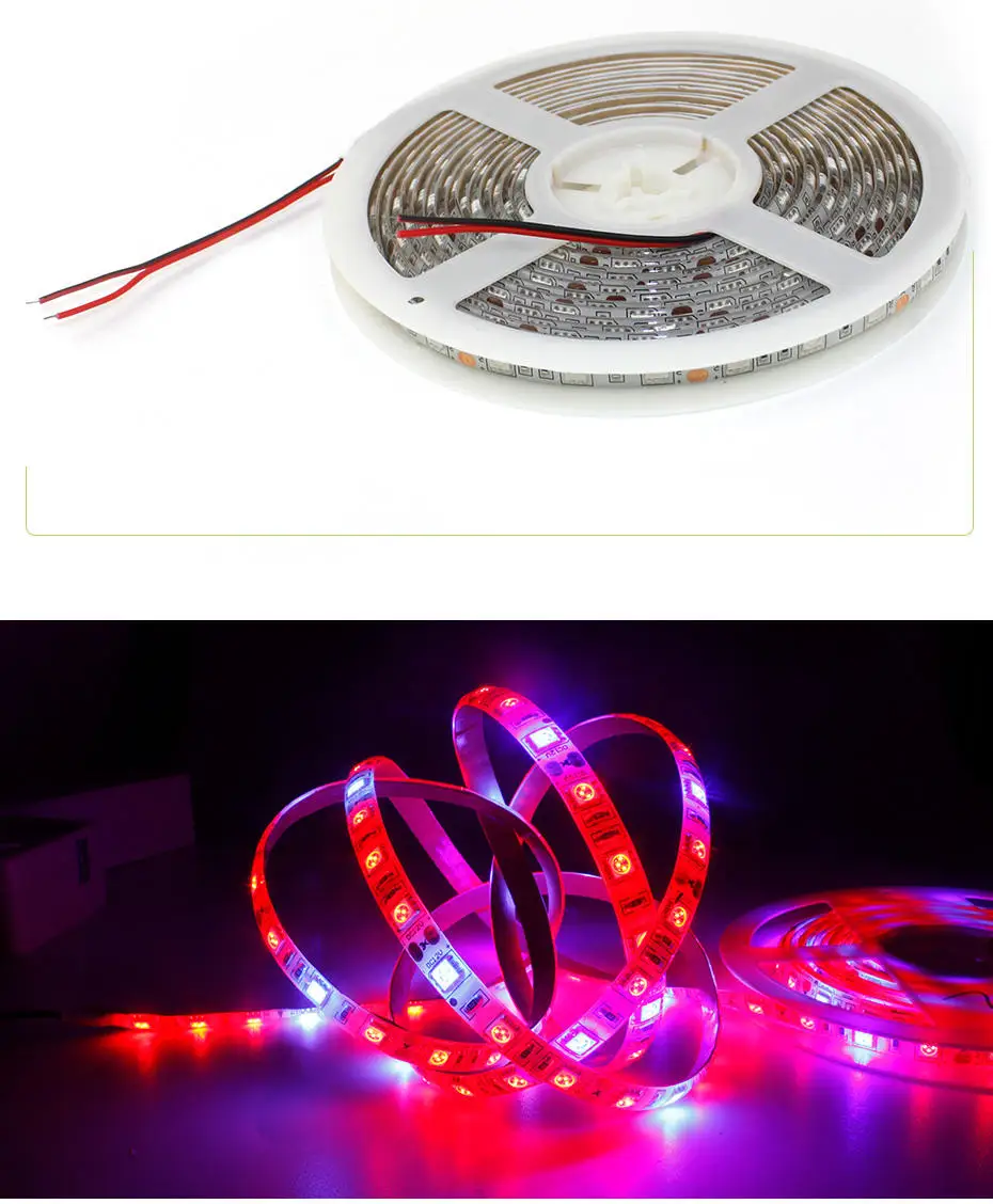 Степень IP: IP65/IP20Тип светодиодный: SMD 5050Количество СВЕТОДИОДНЫЙ: 60 светодиодный/мЦвет: красный и синий (красный: синий = 3:1, 4:1 или 5:1)Светодиодный Длина волны: Красный: 660нм; Синий: 450нмНапряжение: 12 В постоянного токаМощность: 8 Вт/м, 36 Вт/5 мДлина: 5 м (Светодиодная лента припаивается из частей, упакована с 5 м, не проблема качества)Особенности:Энергосбережение с более высокой эффективностью. HPS,HID,MH, лампа накаливания и галогенная лампаПолный спектр, необходимый и критичный для выращивания и цветения растений (от посева до сбора урожая)450нм синий и 660нм красный ускоряет рост листьев660нм красный способствует цветениюИдеально подходит для выращивания коробок, палаток для выращивания, Гидропоники DIY, бонсай, сада и т. д.Удобные, гуманистические и высокоэффективные