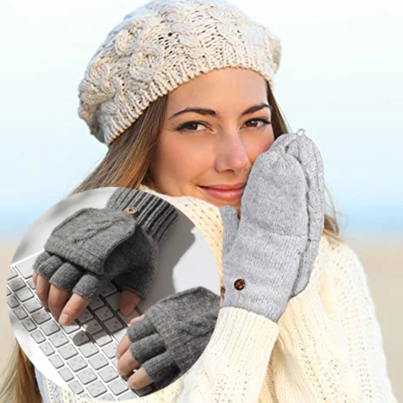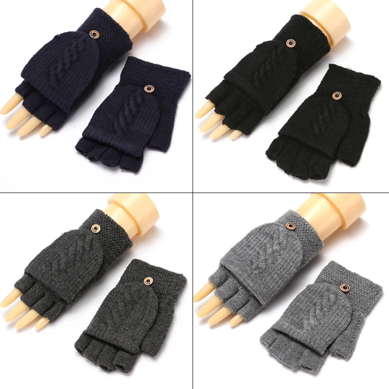 Шерстяные вязаные перчатки-флип без пальцев, зимние теплые перчатки...