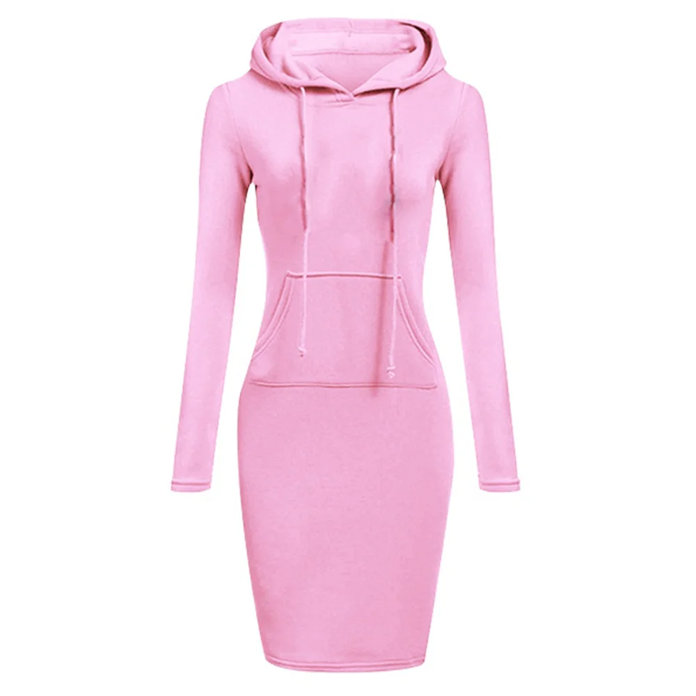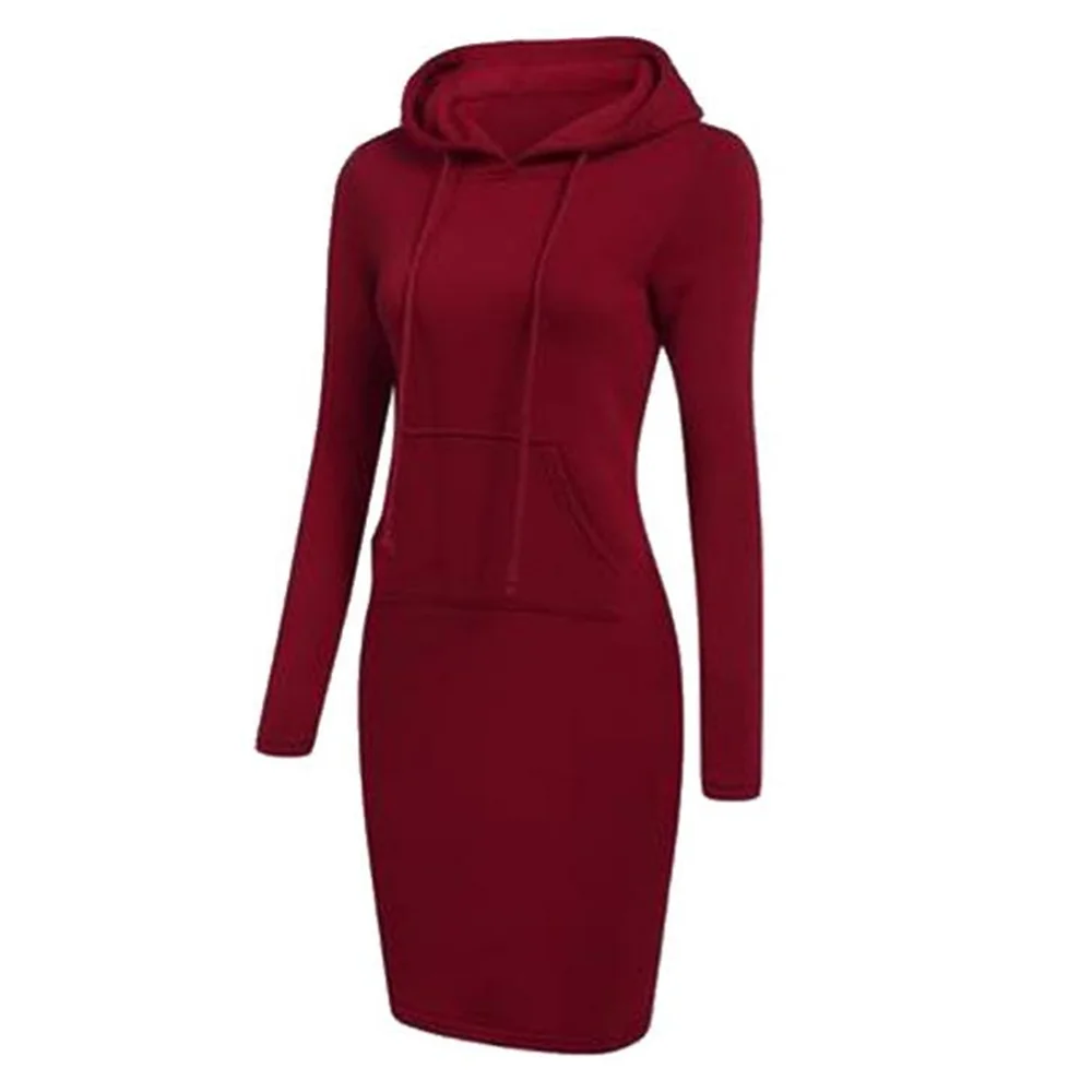 Женское классическое платье с капюшоном, модные однотонные свитшоты с длинным рукавом, зимние и осенние платья с капюшоном и карманами для женщин