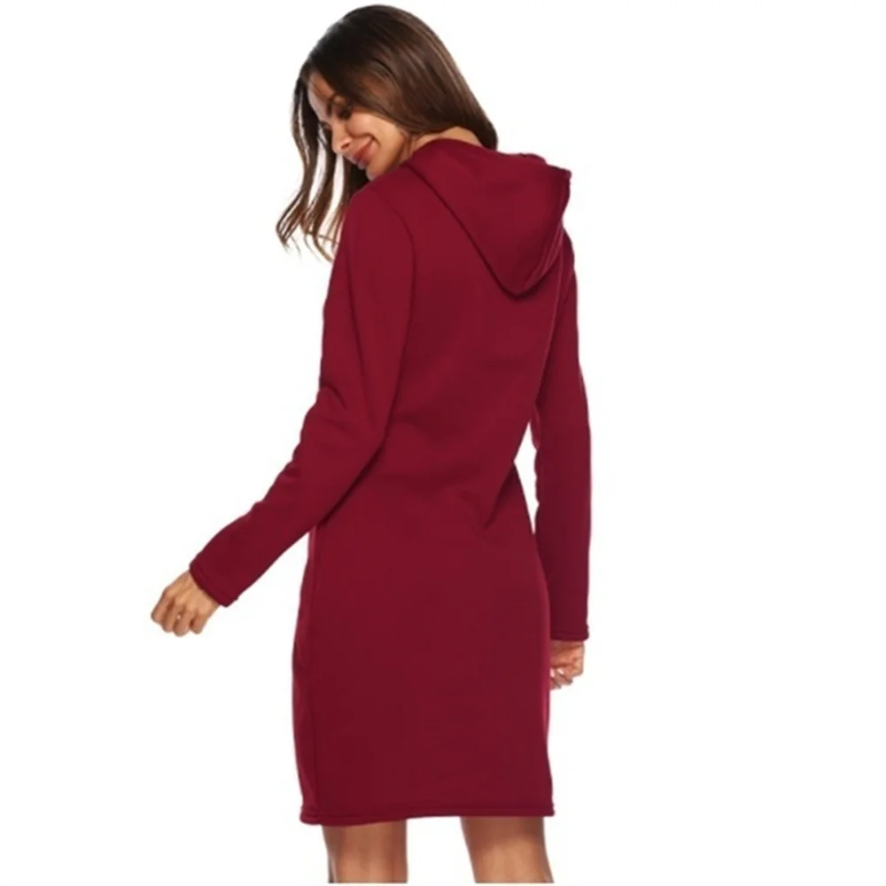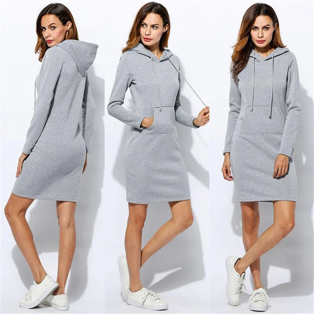 Осенне-зимнее платье с капюшоном для женщин, женская толстовка с ка...