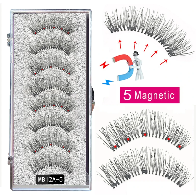 Искусственные ресницы магнитные, 2 пары, 5 магнитных ресниц, натура...