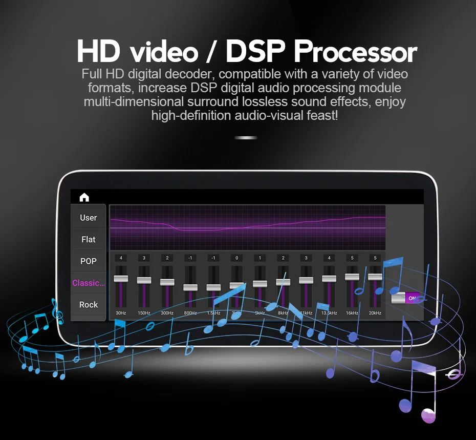 > Встроенный DSP Proessor, многомерные объемные звуковые эффекты без потерь, наслаждайтесь звуковыми эффектами высокой четкости.