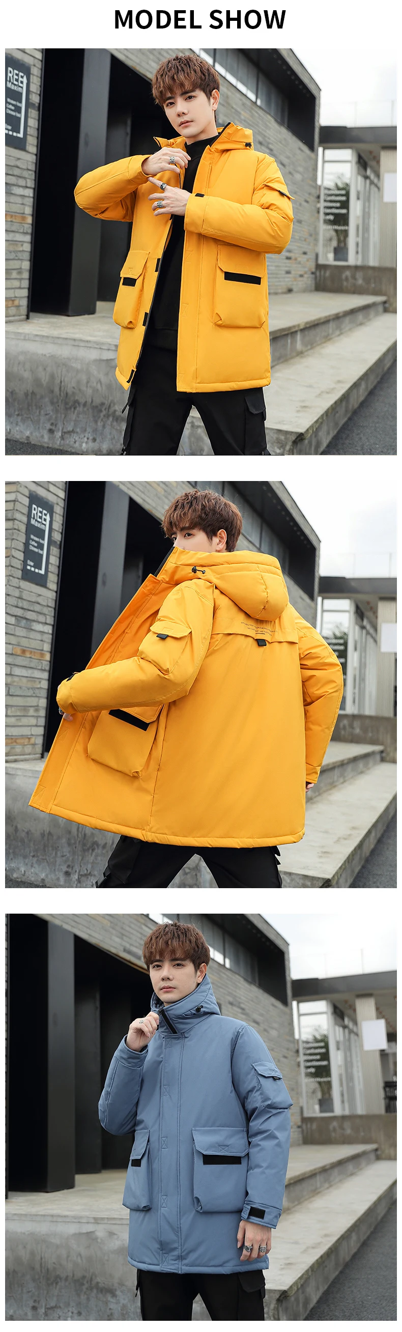 Теплое зимнее пальто на белом утином пуху, модные пуховики, ветрозащитное пальто с капюшоном, уличное винтажное плотное пальто, мужские универсальные пальто