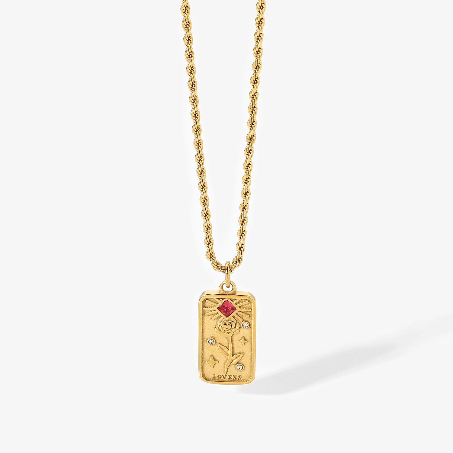 Женское ожерелье с подвеской в виде карты Таро, позолоченная цепочка 18 карат, прямоугольный очаровательный чокер для влюбленных из нержавеющей стали с бриллиантами, Подарочная бижутерия