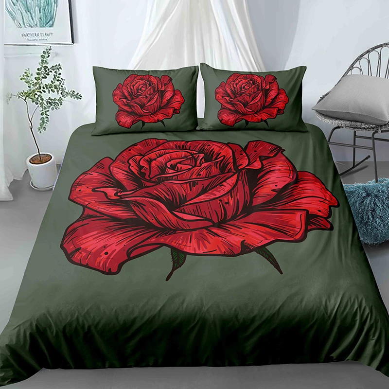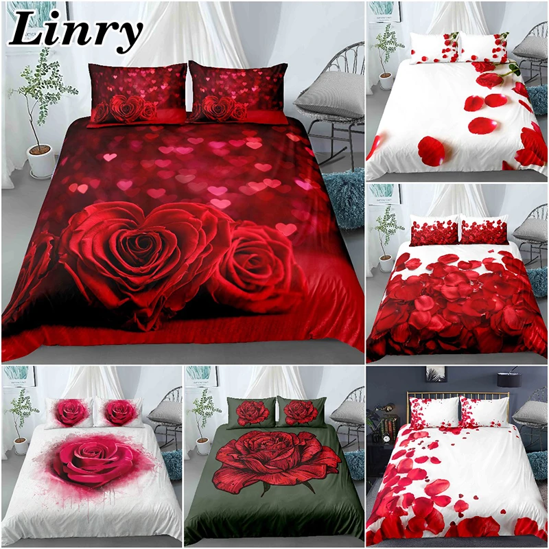 Романтический Комплект постельного белья с красной розой, пододеяль...