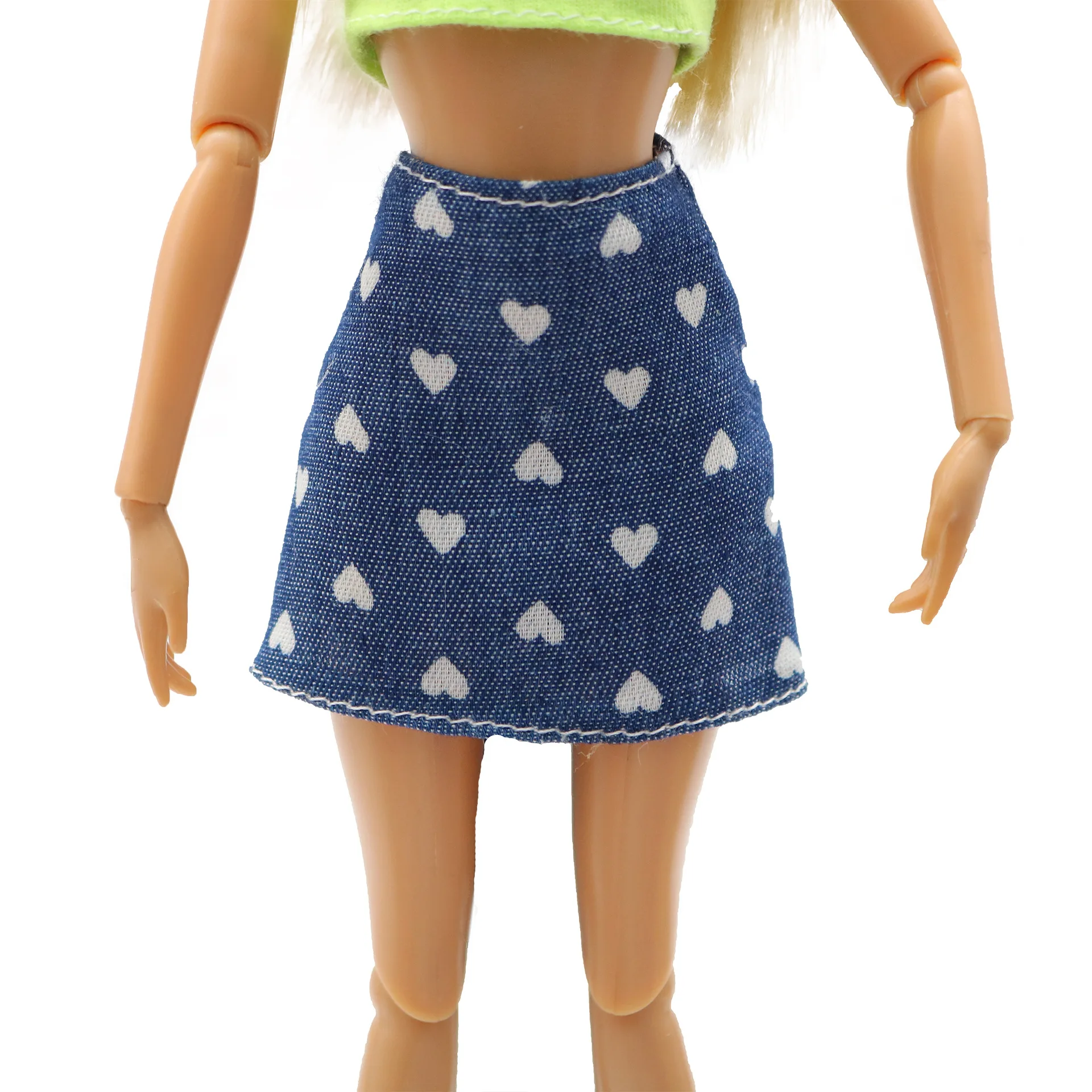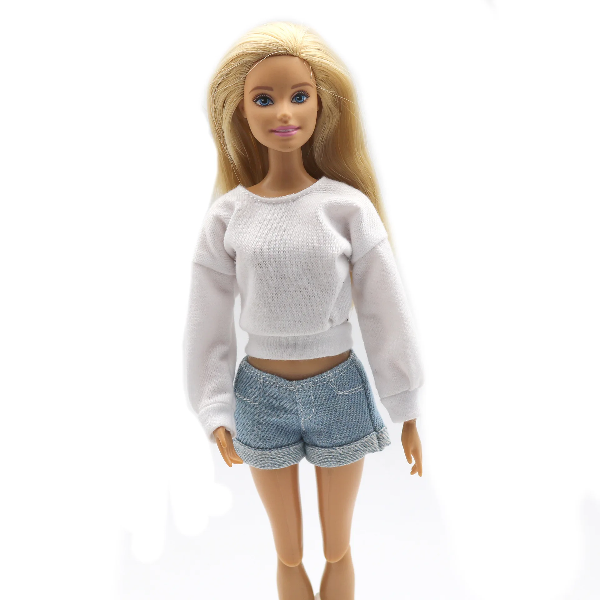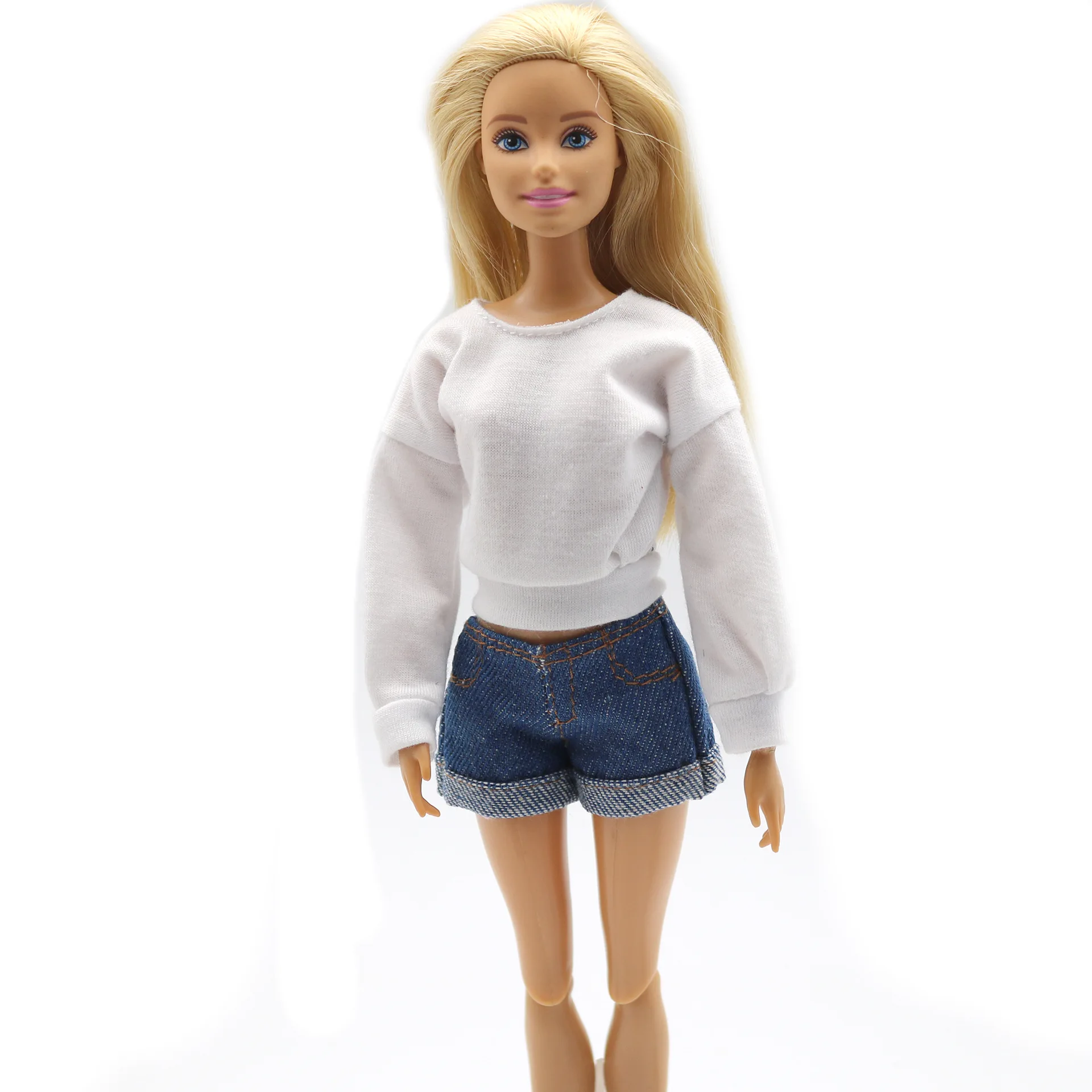 Одежда для Барби, дневная повседневная одежда, однотонная белая футболка, джинсовые брюки, юбка, Одежда для куклы Барби