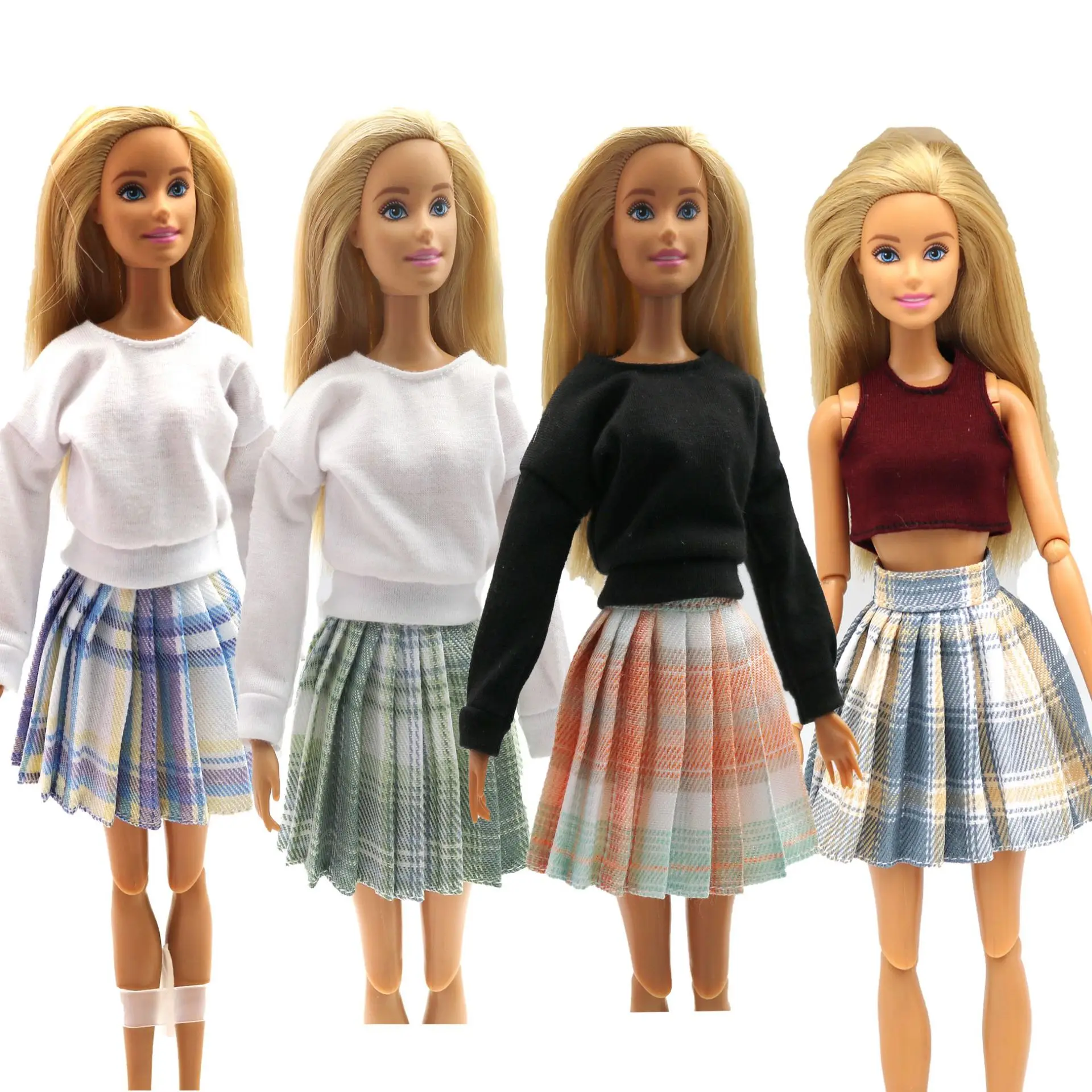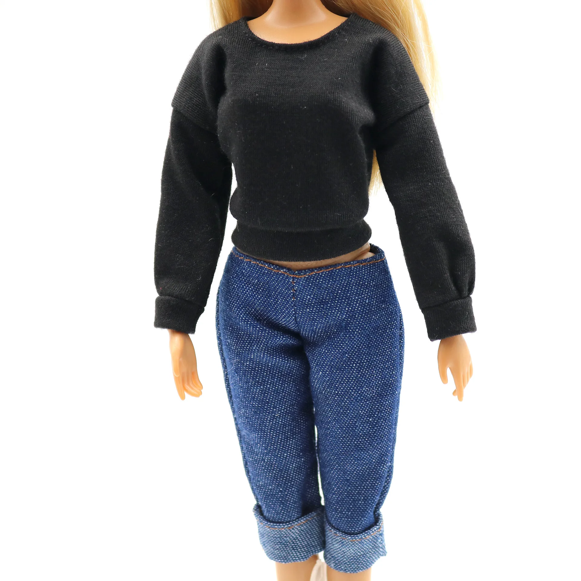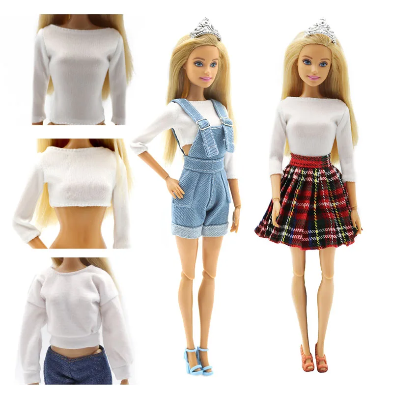 Одежда для Барби, дневная повседневная одежда, однотонная белая футболка, джинсовые брюки, юбка, Одежда для куклы Барби