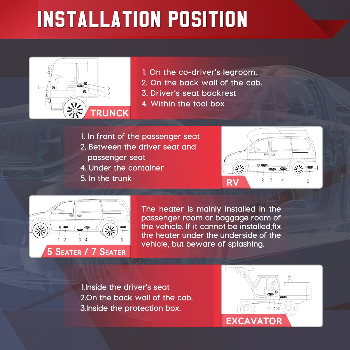 Особенности:-Может использоваться на больших высотах,4500 метров над уровнем моря.-Пульт дистанционного управления нагревателя может быть подключен к выключателю.-Все в одном блоке, экономит место и легко перемещается.-Легко устанавливается и снимается.-Простота в обслуживании.-Нагреватель может быть применен для нагрева кабины грузовых автомобилей, аккумуляторных батарей и всех видов других транспортных средств.-Может устранить Мороз окна;-Экологически чистый продукт, низкий уровень выбросов, низкий расход топлива; Выхлопные газы нагревателя для удовлетворения требований к выбросам двигателя евро IV.-Компактная конструкция, легко устанавливается;-Может демонтировать новый автомобиль при замене транспортного средства.-Летучая технология, с помощью керамической вилки зажигания нагревание топлива испаряется в газ, быстрое зажигание, полное сгорание.-Использование передовой технологии автоматического управления с надежными ненормальными условиями эксплуатации.-Топливо, электричество, температура может быть установлена произвольно.-Новый воздушный Нагреватель-это второе поколение модернизированных продуктов, воздушное судно поддерживает Оригинальное экономичное и экономичное нагревание на основе характеристик увеличения функций дистанционного управления, чтобы сделать управление более простым и удобным. Для увеличения фиксированного кронштейна баланс крыльчатки вентилятора более стабильный, уменьшая шум.-Простота установки, экономичность и удобство. Может использоваться в качестве размораживания оконного стекла, но также для кабины, студии, каюты теплоизоляционных услуг.