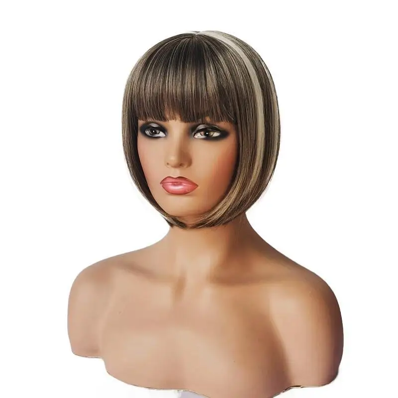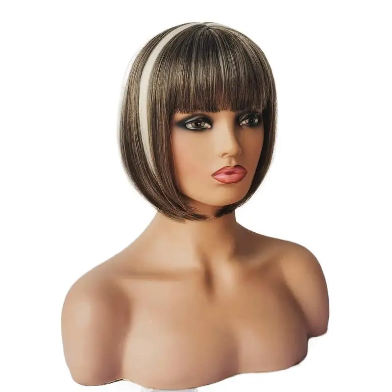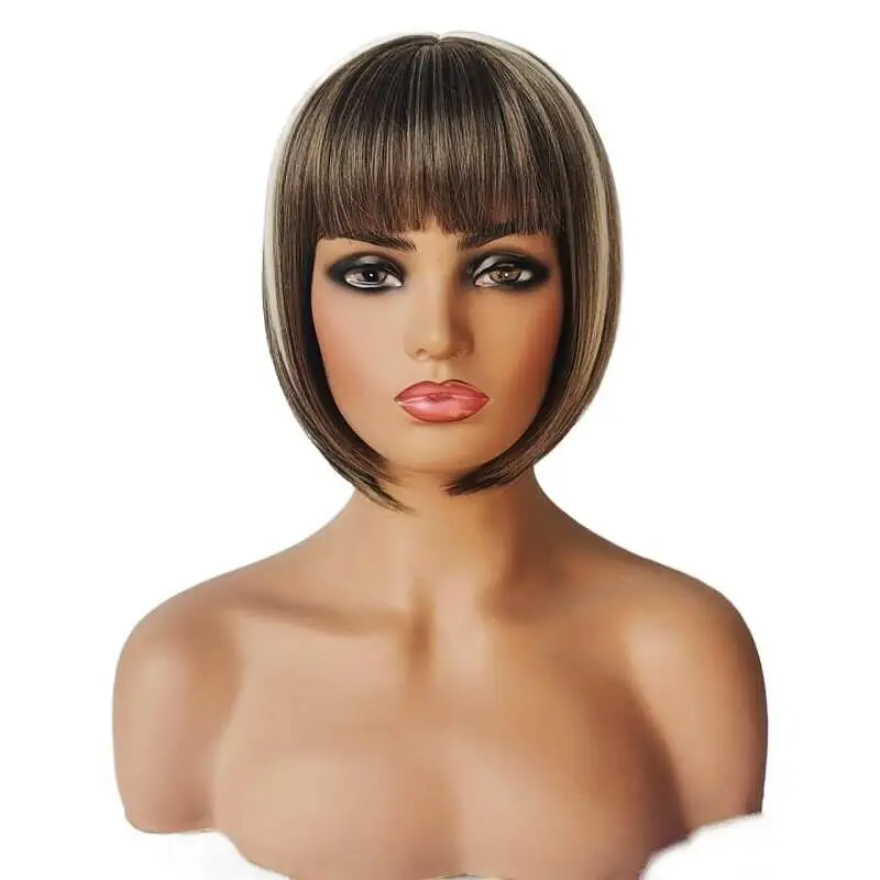 Женский синтетический парик JOY BEAUTY, смешанные блонд-коричневые короткие парики, натуральные короткие прямые волосы, жаропрочные волосы