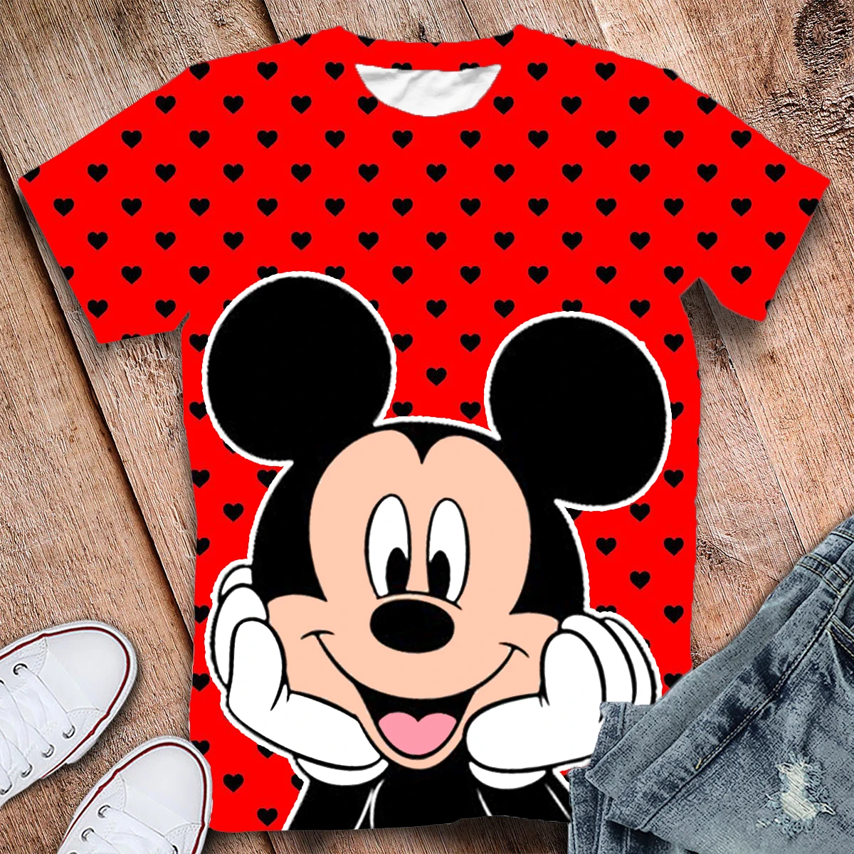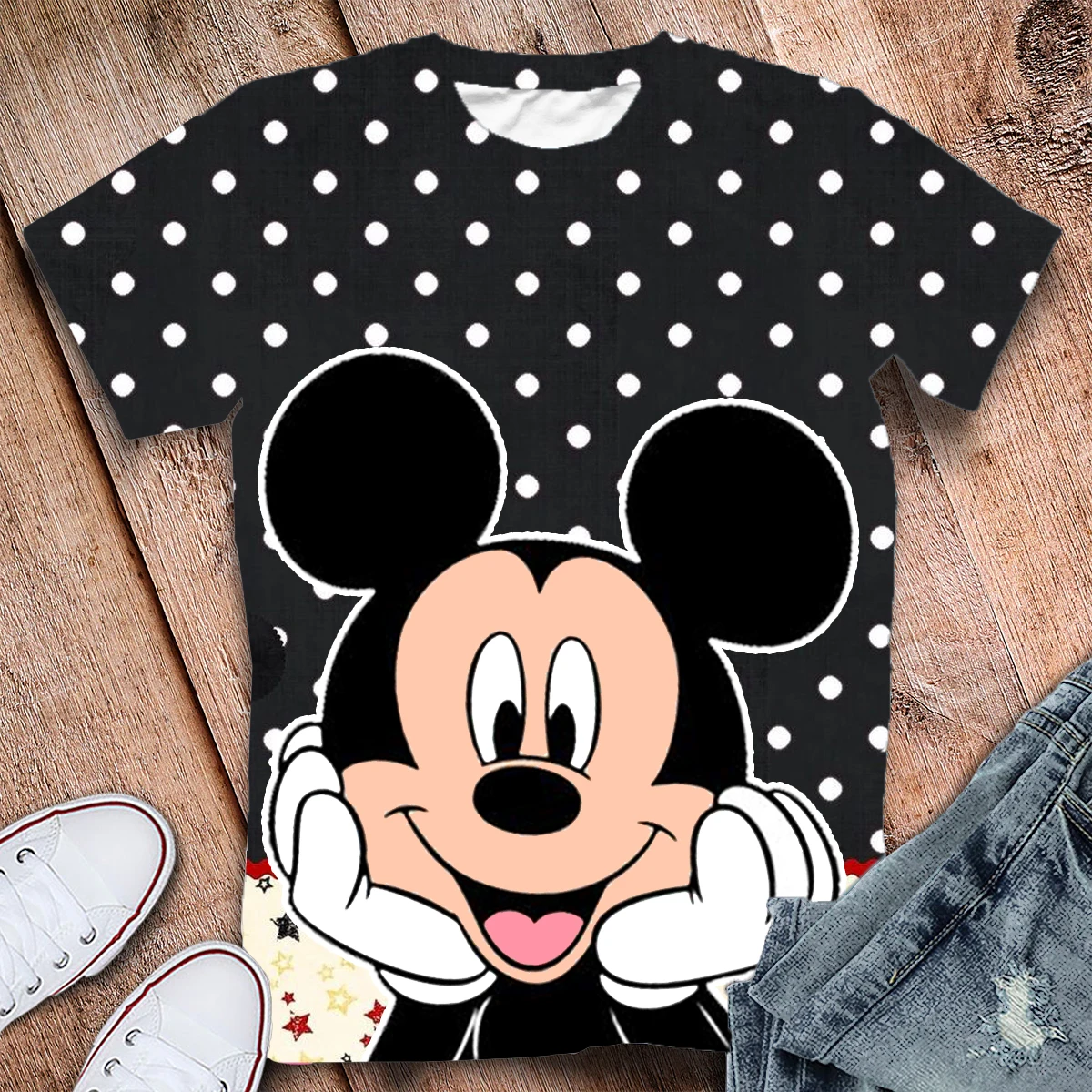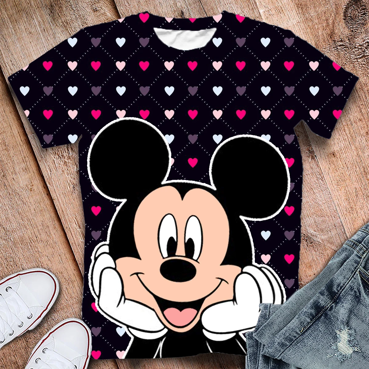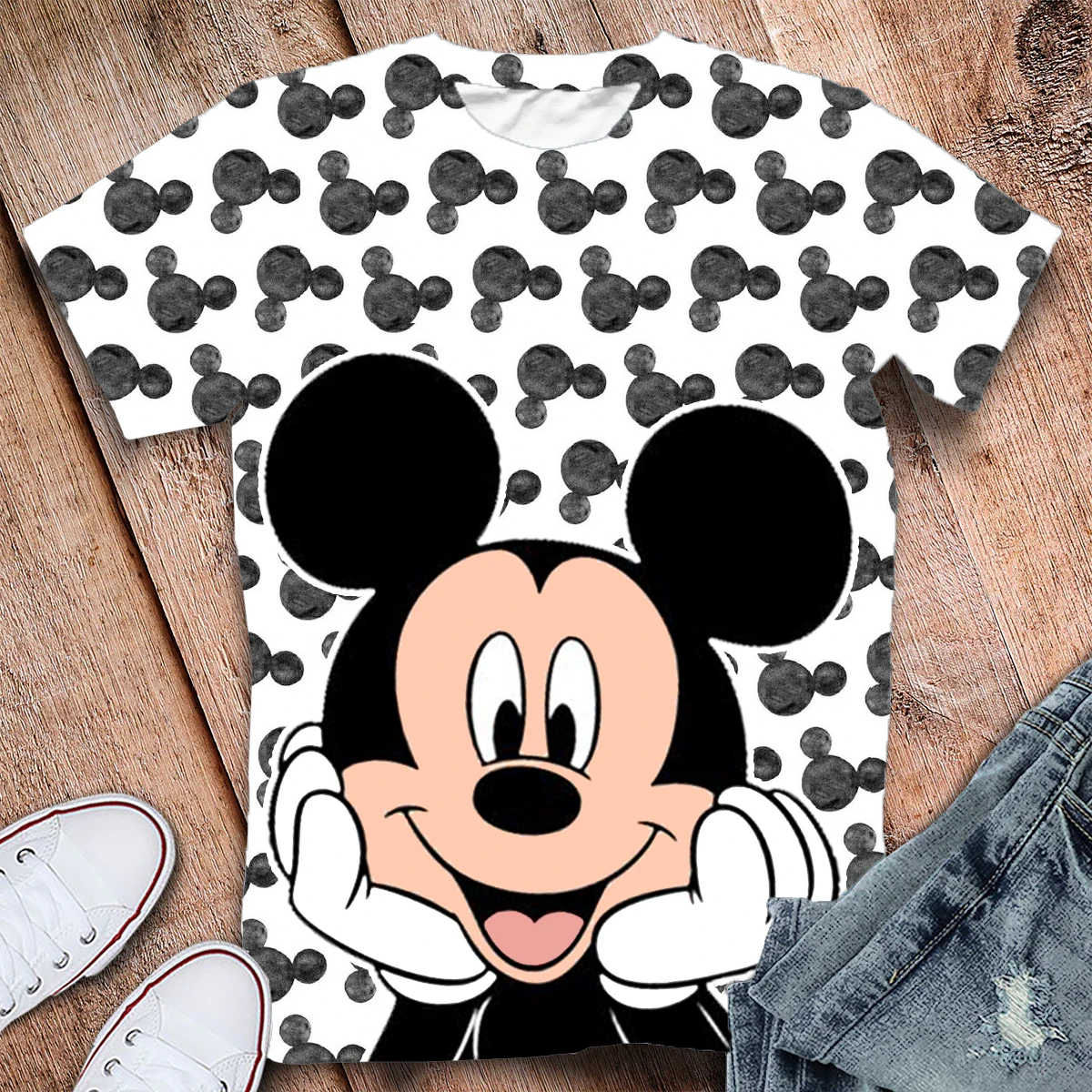 Женская футболка с коротким рукавом, летняя футболка большого размера в стиле ольччан с 3d-изображением Диснея, Микки, Минни, Харадзюку, y2k