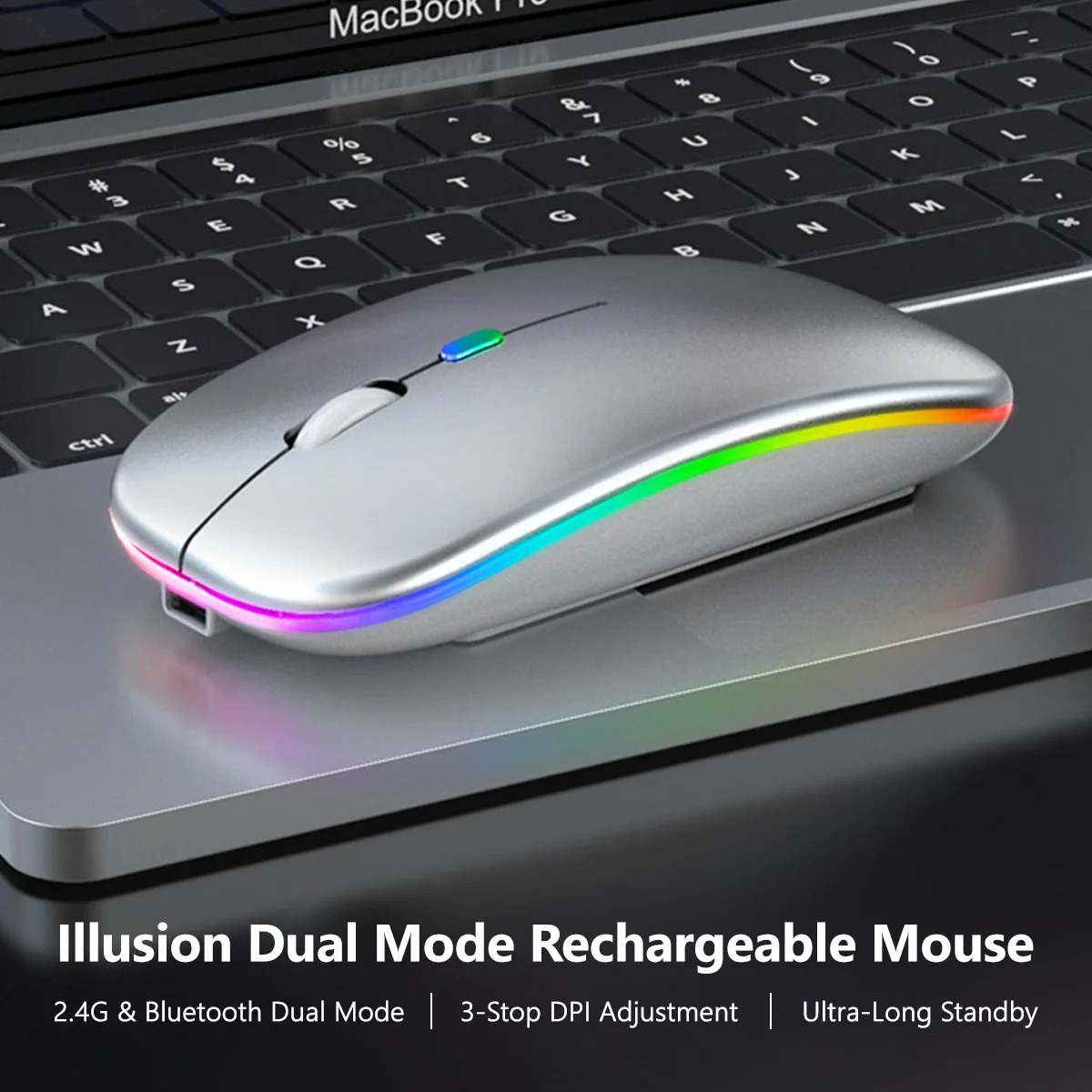 Bluetooth Беспроводная USB перезаряжаемая RGB мышь BT5.2 для ноутбука, компьютера, ПК, Macbook, игровая мышь 2,4 ГГц 1600DPI, бесшумная мышь