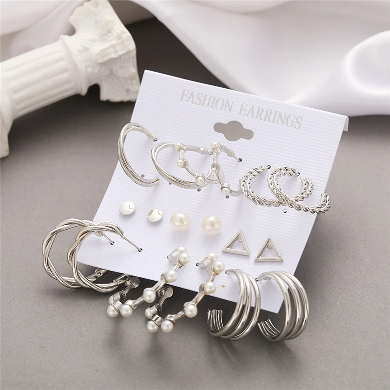 Винтажные серьги-кольца 17KM золотого и серебряного цвета с жемчугом, геометрические серьги-бабочки Комплект сережек для женщин, модные ювелирные изделия 2021