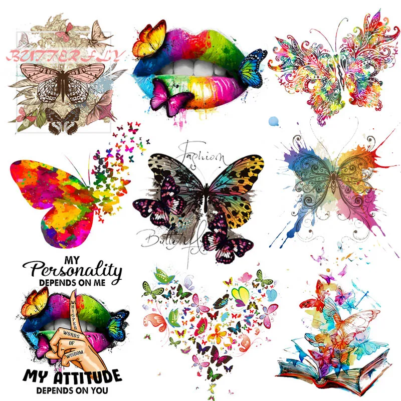Теплопередача виниловый, с изображением цветка бабочки наклейки Патчи для одежды Железный На переноске для одежды термоколlants Vetement