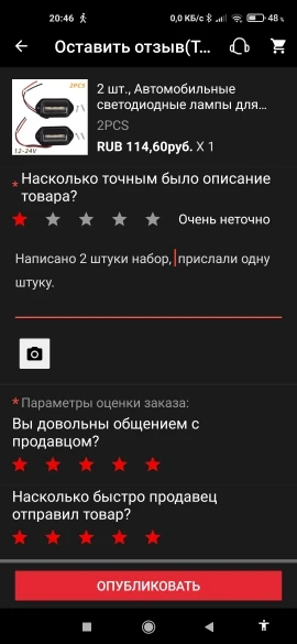 Описание количества товаро не соответствует действительному, мало что посылки идут очень долго так ещё и врут.