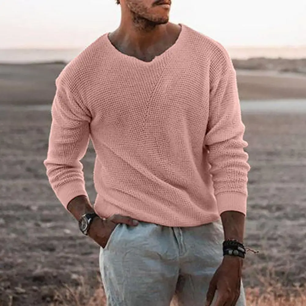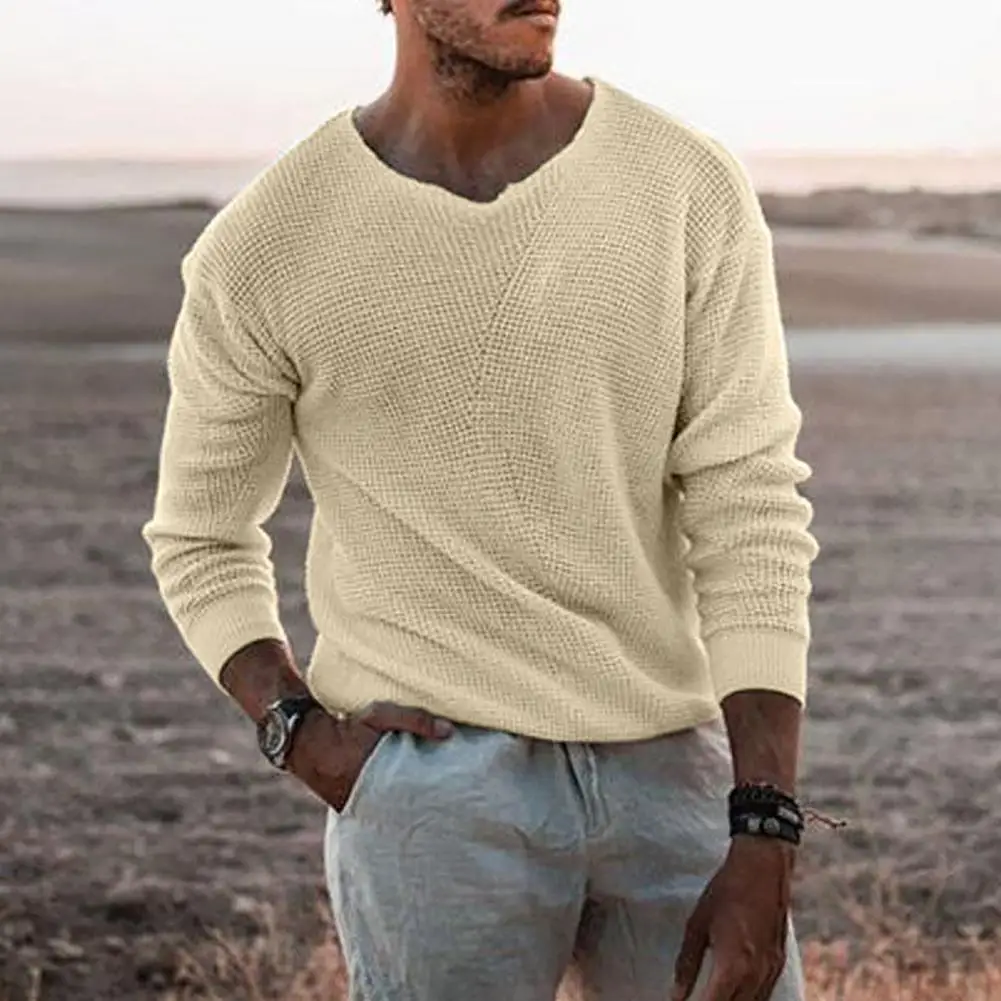 Повседневный мужской свитер с длинным рукавом, простой однотонный дышащий эластичный вязаный пуловер с V-образным вырезом, свитер, уличная одежда