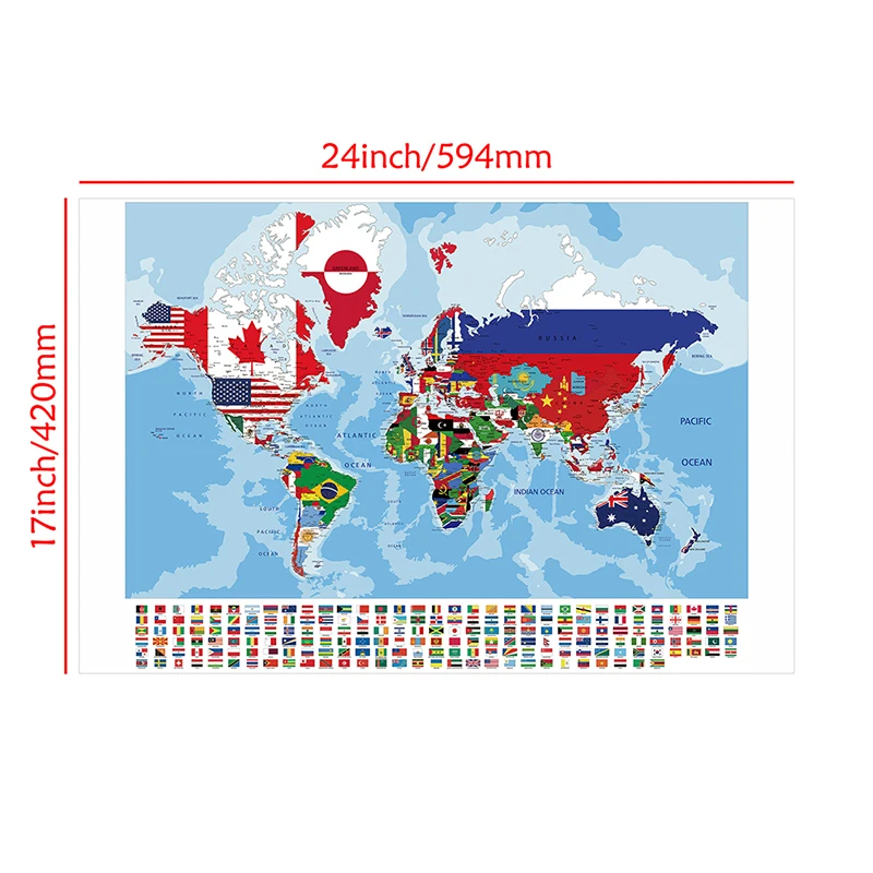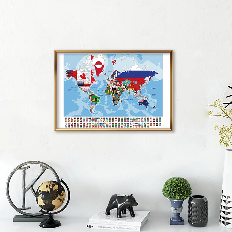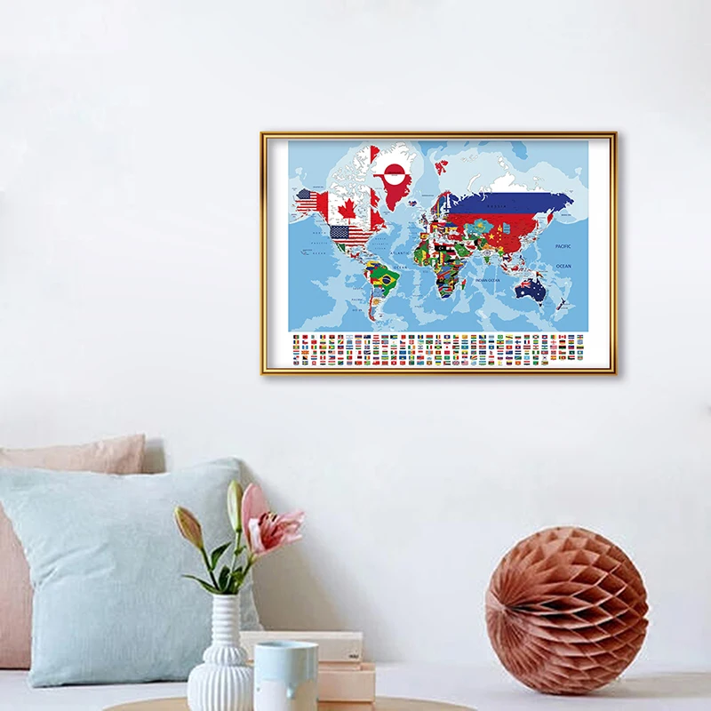 Мировая политическая Настенная карта с национальными флагами 59*42 см, Картина на холсте, Современная фотография