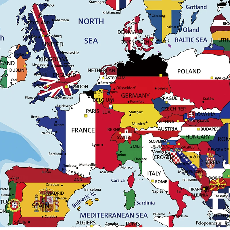 Карта Европы с деталями, 90*60 см, настенный плакат, Картина на хол...
