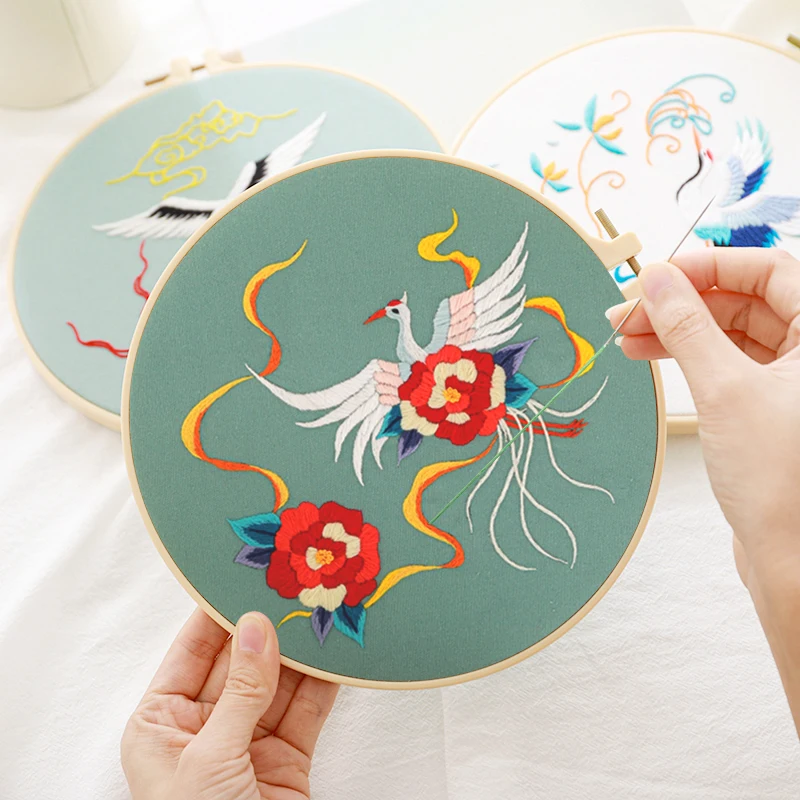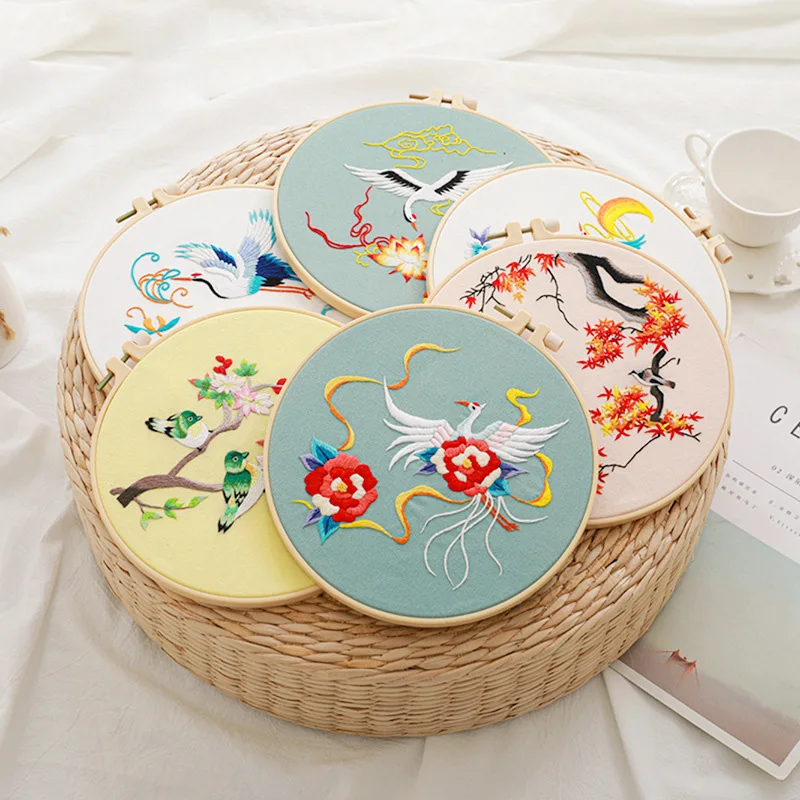 Набор для вышивки крестиком, Набор для творчества сделай сам в китайском стиле, с обручем, с принтом, для шитья, рукоделия