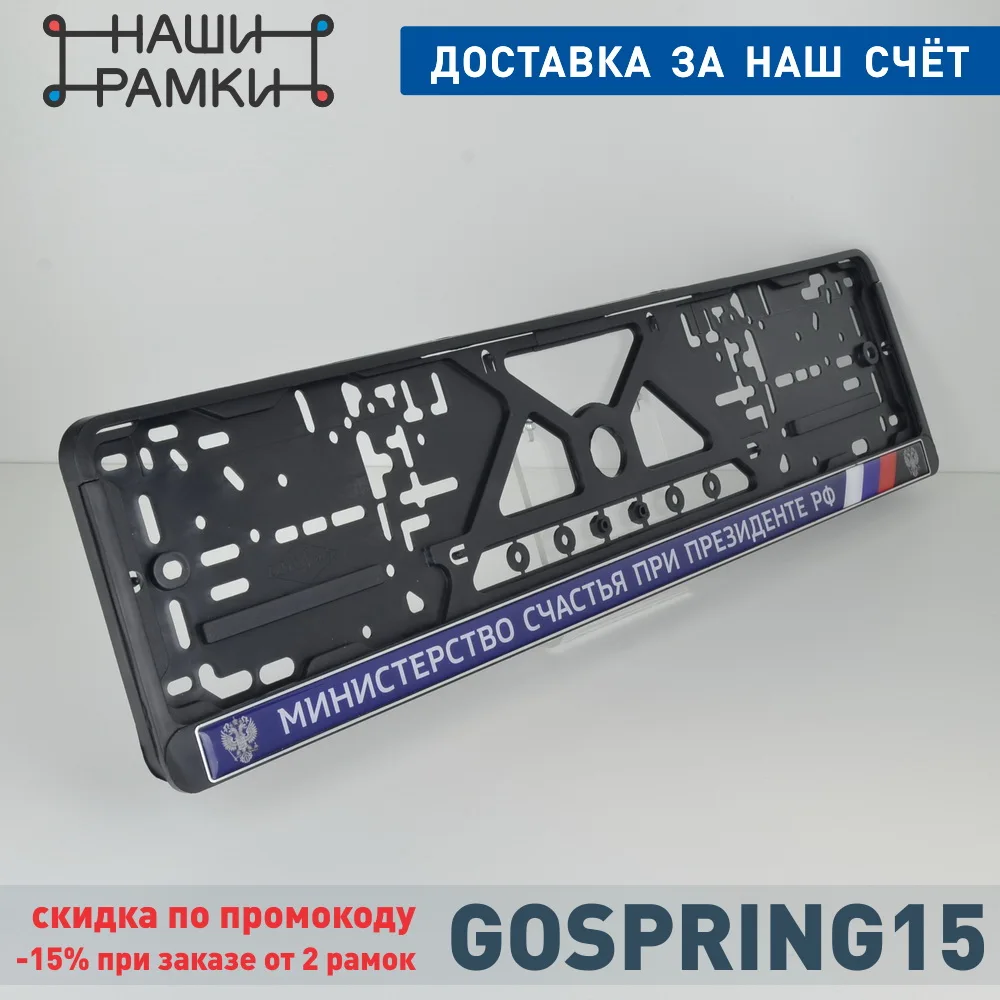 F04 МИНИСТЕРСТВО СЧАСТЬЯ РФ Рельефная Рамка для номерного знака. Объёмные буквы. Рамка-книжка. Держатель номера. A.R1.RELIEF