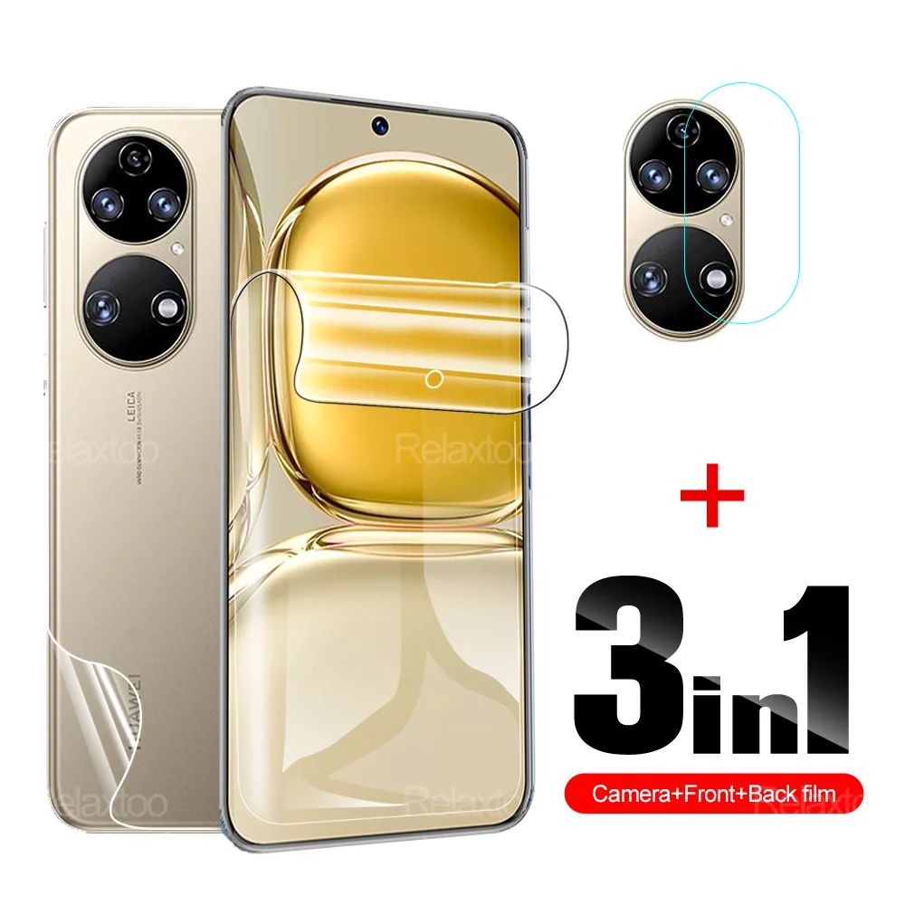 Гидрогелевая мягкая пленка 3 в 1, полное покрытие, Защита экрана для Huawei P50 Pro, Защитная пленка для Hwawei P 50 Pro