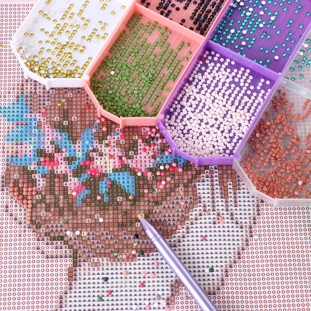Дизайн открывания удобен и прост в использовании. После того как Алмазная картина закончена, крышку можно открыть, и алмазы можно вылить в ящик для хранения.