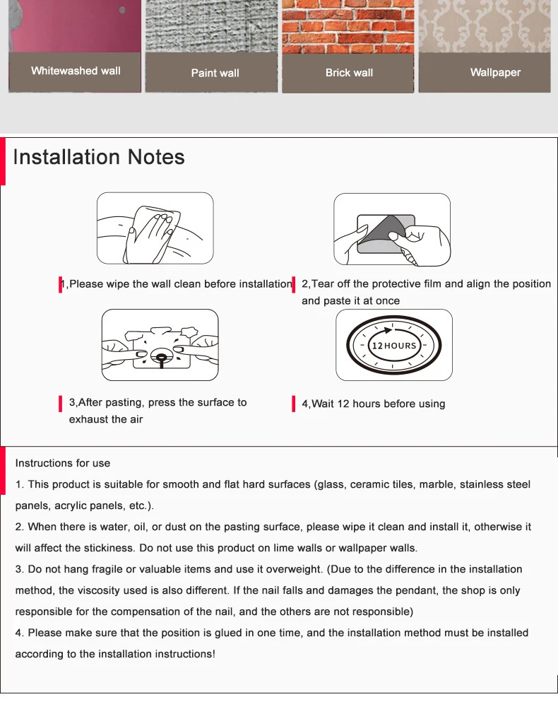 Не такая действенная вещь, как ожидалось... Повесила пластиковые небольшие часы на крашеную стену и ночью все это громко упало. хорошо, что не рамка со стеклом... Короче, тот клей, который там есть, у него не достаточная несущая способность, нужно подклеивать дополнительно ещё чем-то (( немного разочарована, я, просто, знаю что это могло быть хорошо, но((( Хотя вообще вещь прикольная, гаечка откручивается при необходимости, типа все продумано, кроме клеящей способности.
