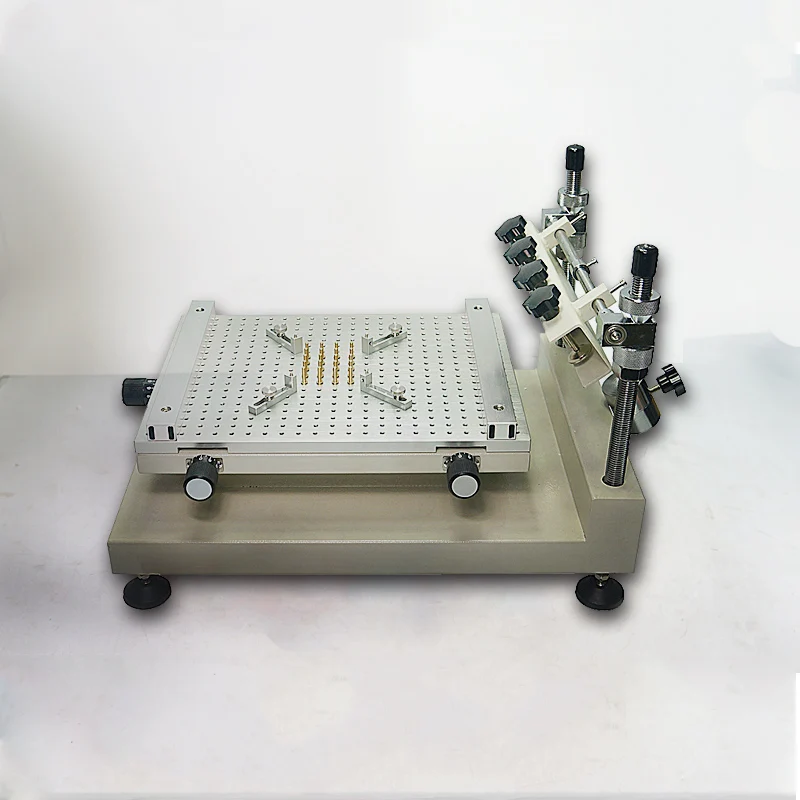 Стальная проволочная рама принимает спиральную винтовую планку, которая может регулировать высоту вверх и вниз, чтобы контролировать толщину печатной платы и количество печатной пасты