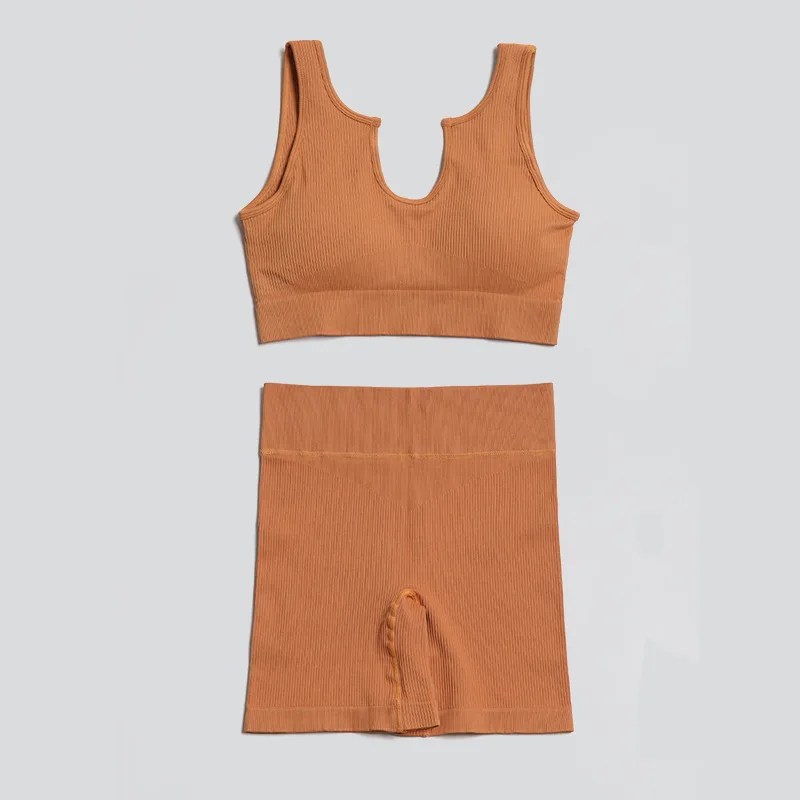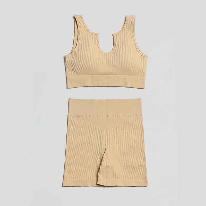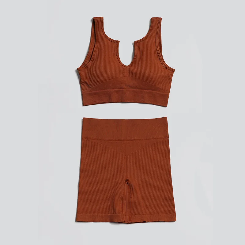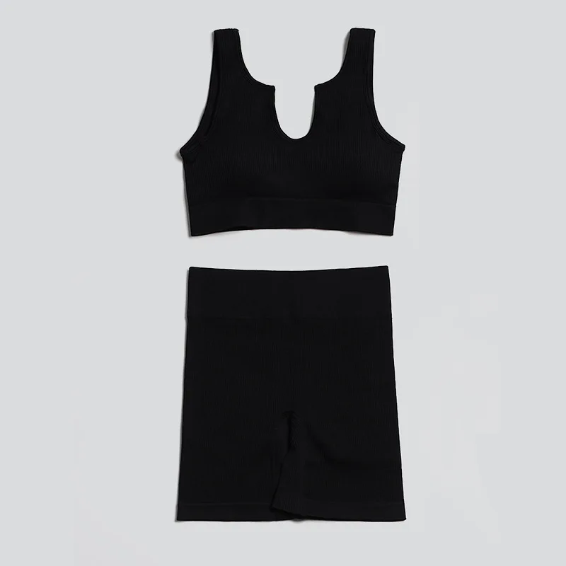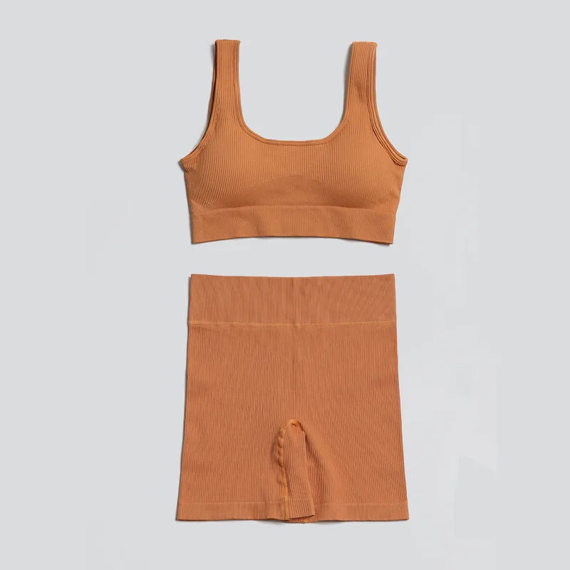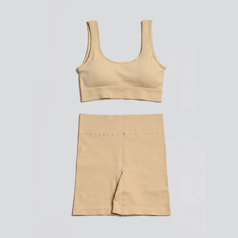 SOISOU бесшовный вязаный женский спортивный костюм, комплект для йоги, спортивная одежда, плотный эластичный костюм для фитнеса, комплект из двух предметов, женский спортивный бюстгальтер и шорты