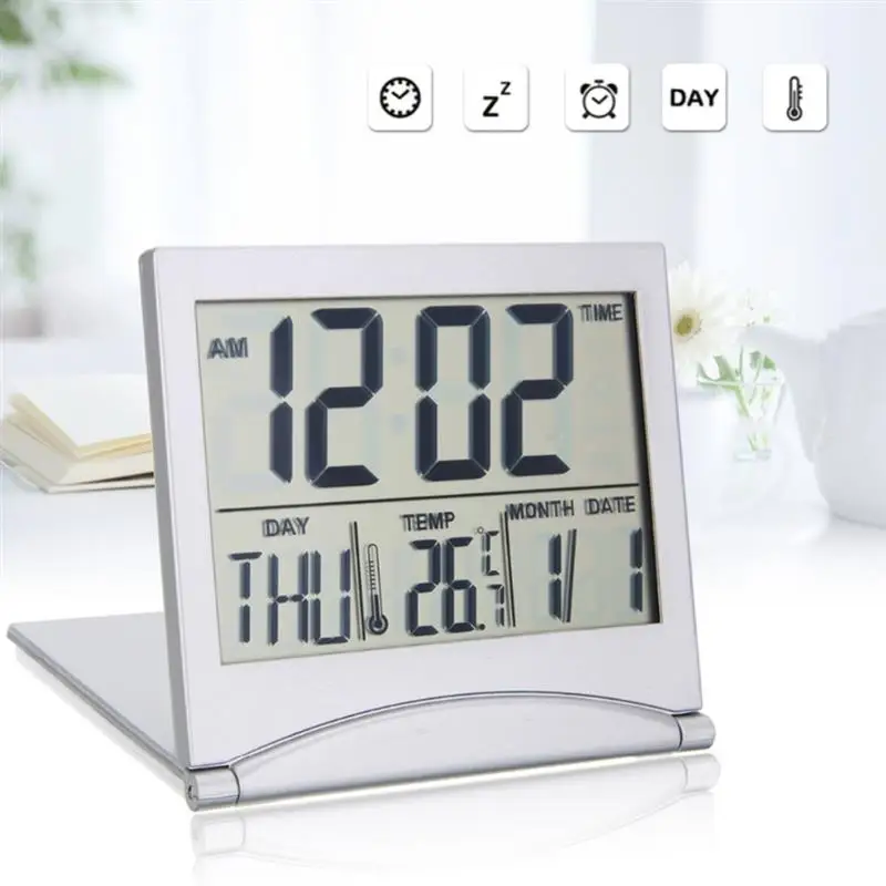 Складной цифровой будильник с ЖК-дисплеем, Настольная метеостанция,...