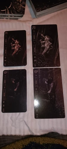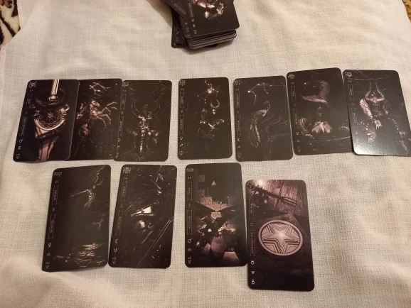 Колода для реплики очень приличная,гладкая,картон нормальный,не особо тонкий,размер 10 на 6,но вот из-за размера колоды плохо видно сигиллы и названия,доставлена бесплатно в течение двух недель в Воронежской область,с продавцом не общались,.Карты понравились, только приходится сильно напрягать глаза,чтобы рассмотреть.