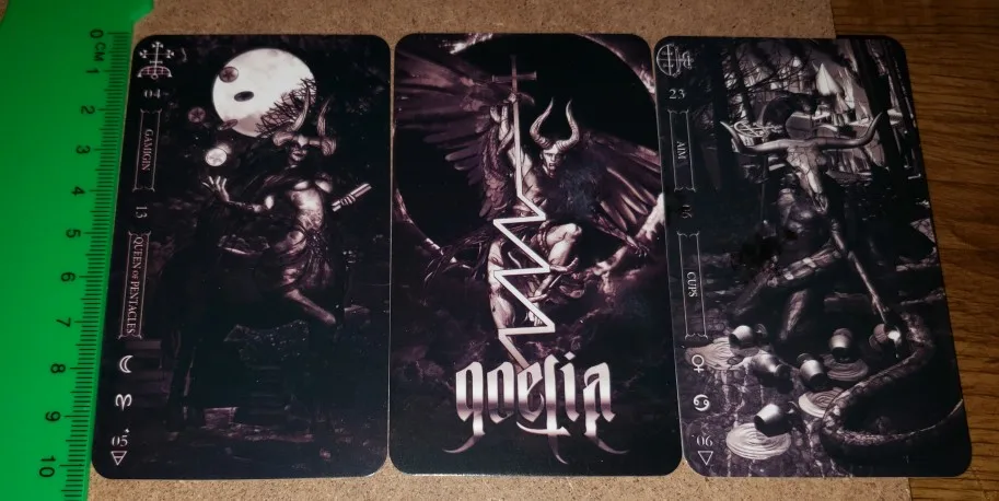 Я прибываю задолго до предполагаемой даты, чуть более двух недель. Качество карт хорошее, у меня Обычная полоса, и они одинакового толщины, меньше и хорошо скользят. Качество изображения хорошее, нужно быть достаточно близко, чтобы заметить пиксели изображения, поэтому оно не влияет. Единственным недостатком является QR-код, это приводит вас к остальной части каталога магазина, однако руководство, которое находится там, не является тем, что в лодке GOETIA de Fabio Listrani (тот, который я купил), это зазор, отличный от того же письма, Продавец не ответил на мое сообщение с просьбой о правильном файле, поэтому только по этой причине я бы порекомендовал вам искать в другом магазине на странице. Если у кого-то есть правильный файл, я был бы признателен, если бы мог передать его мне (на английском или испанском), так как его трудно найти.