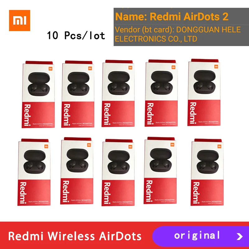 10 шт./лот, оригинал, Xiaomi Redmi Airdots 2 TWS, умные наушники, настоящие беспроводные Bluetooth наушники, 5,0 mi True, беспроводные наушники
