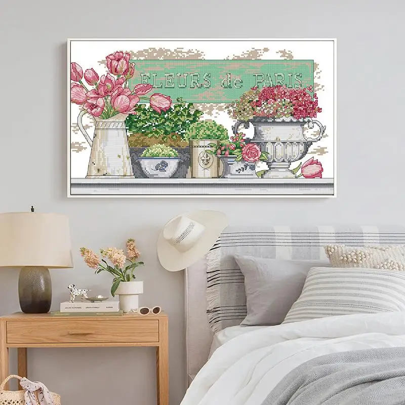 Набор для вышивки крестиком в горшке с изображением цветов Парижа