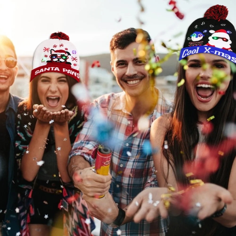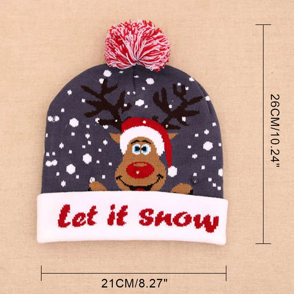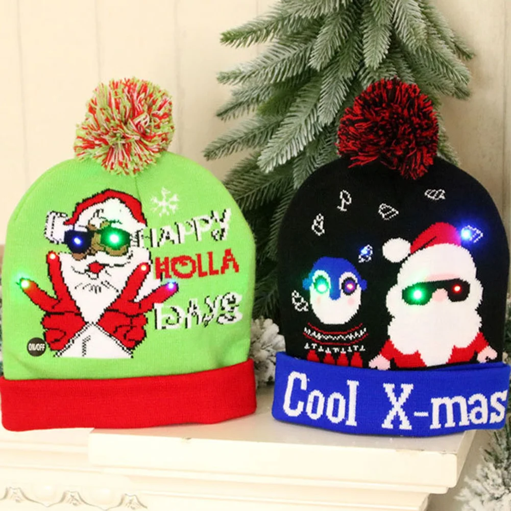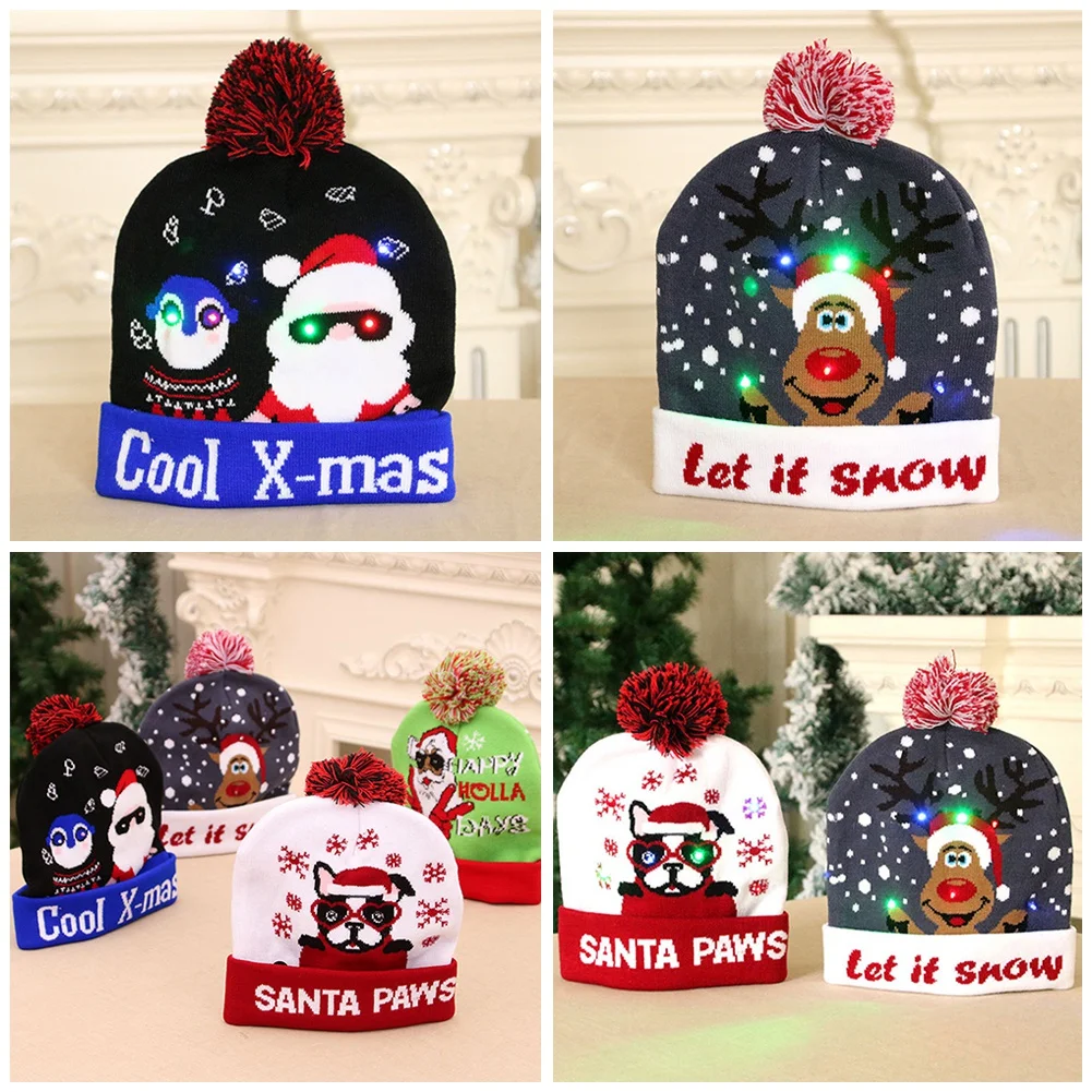 Шапка-бини вязаная, светодиодный светильник кой, для рождества, Рождественское украшение для волос