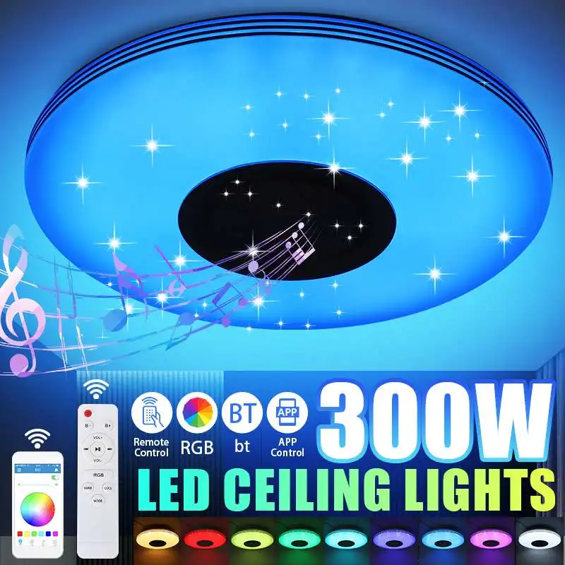 Мощность: 300 ВтСветодиодный Тип: 2835SMDМатериал: чехол из поликарбоната + железоНапряжение: ac220в/100-260 ВЦветовая температура: 3000-6500KСветильник Цвет: белый, теплый белый, RGB (красный, зеленый, синий)Режим управления: настенный выключатель + Мобильный bluetooth контроль + пульт дистанционного управленияСветильник режимы: подстраиваются под тусклый или яркий, ритм музыки прозрачный градиентный фон красочный flashinging светильникПрименение:Для спальни, гостиной, конференц-зала, кухни, гостиной, зала, кухни, ванной комнаты, прихожей, лестниц, мастерских и выставок и т. д.Упаковочный лист:1x светодиодный потолочный светильник1 сумка для аксессуаров1x пульт дистанционного управления