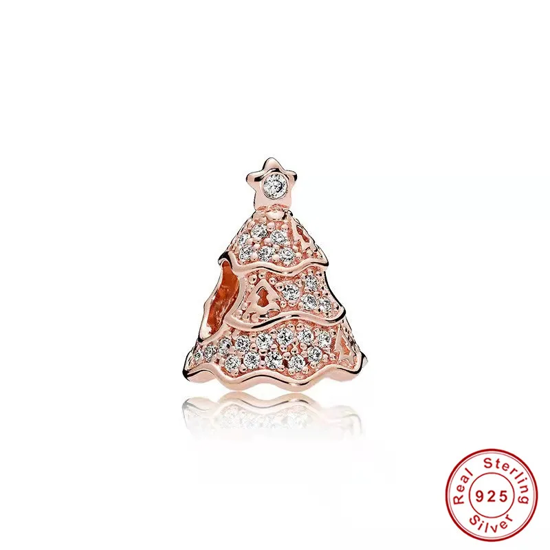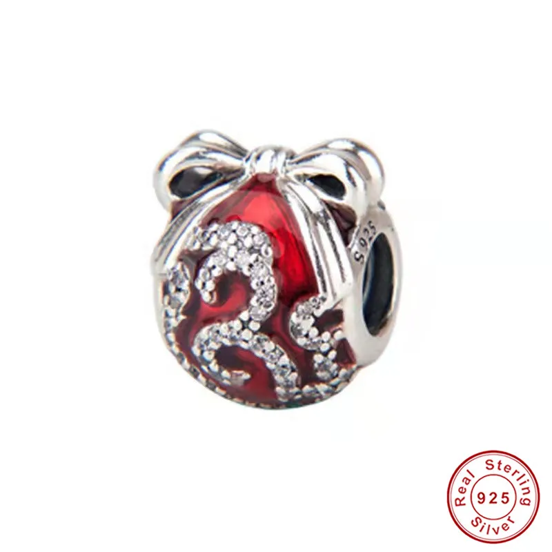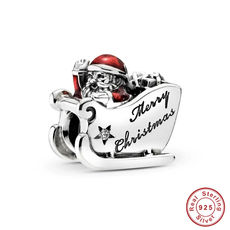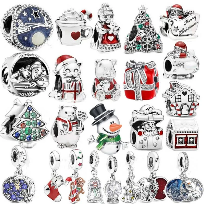 Оригинальные рождественские бусины-шармы из серебра 100% пробы, рож...