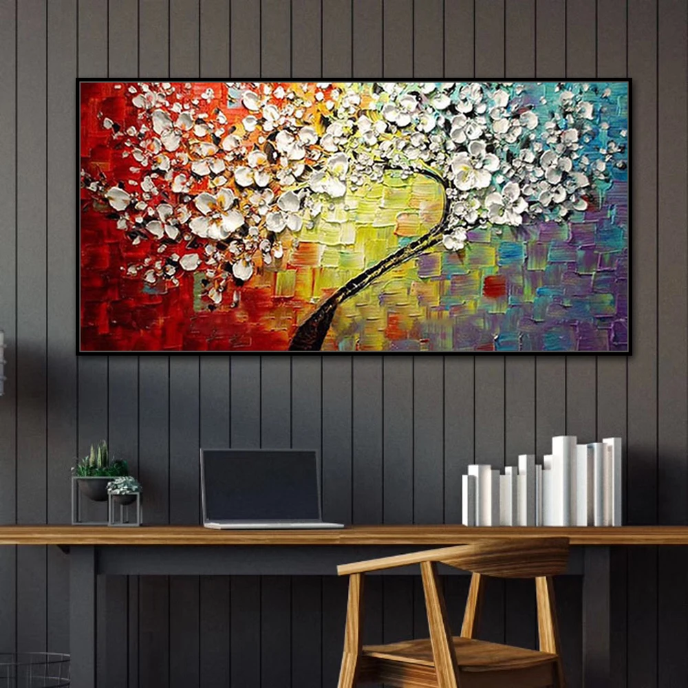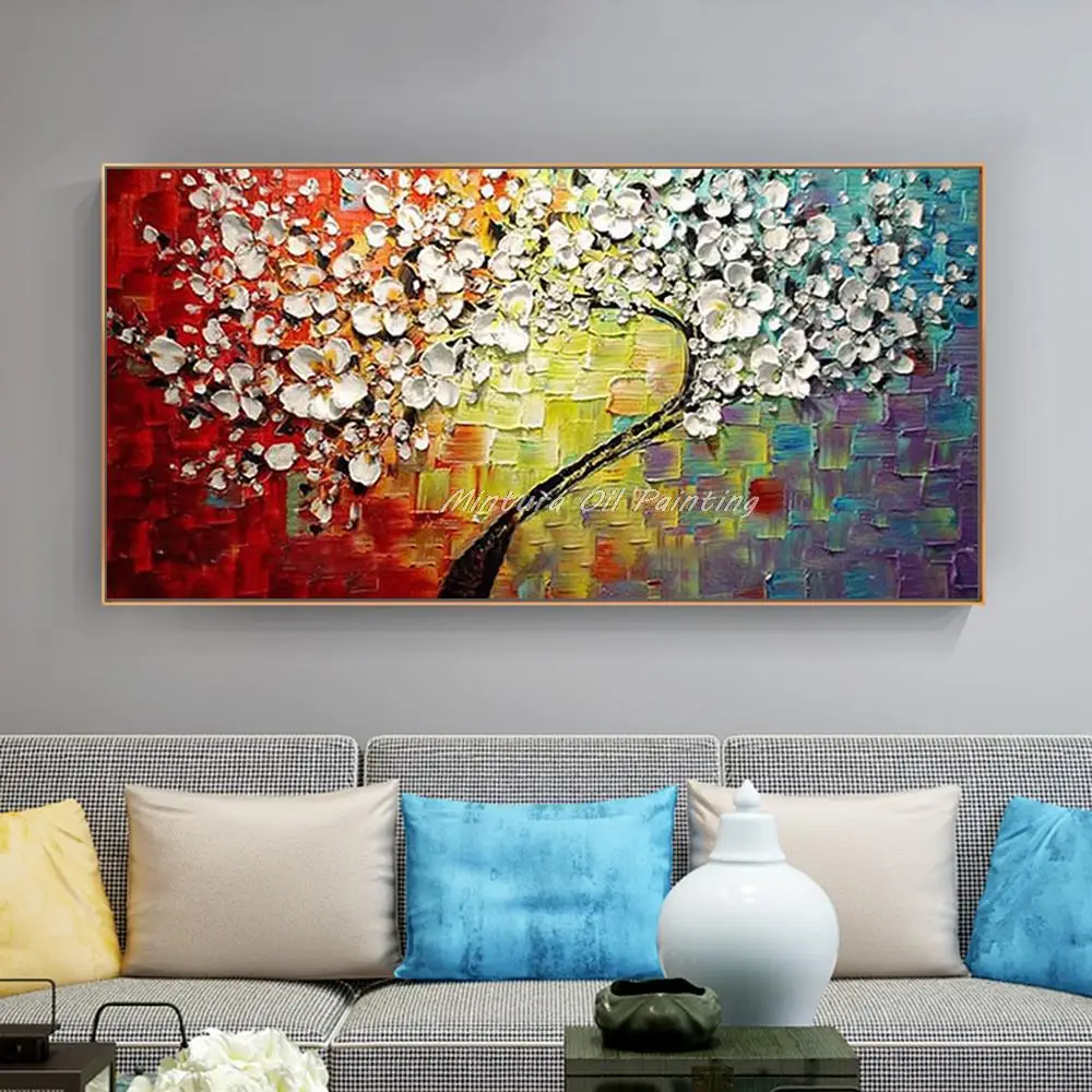 Картина на стену Mintura для гостиной, Масляные картины на холсте, ручная роспись, белые толстые маслянистые цветы, декор для отеля, настенная живопись, без рамки.
