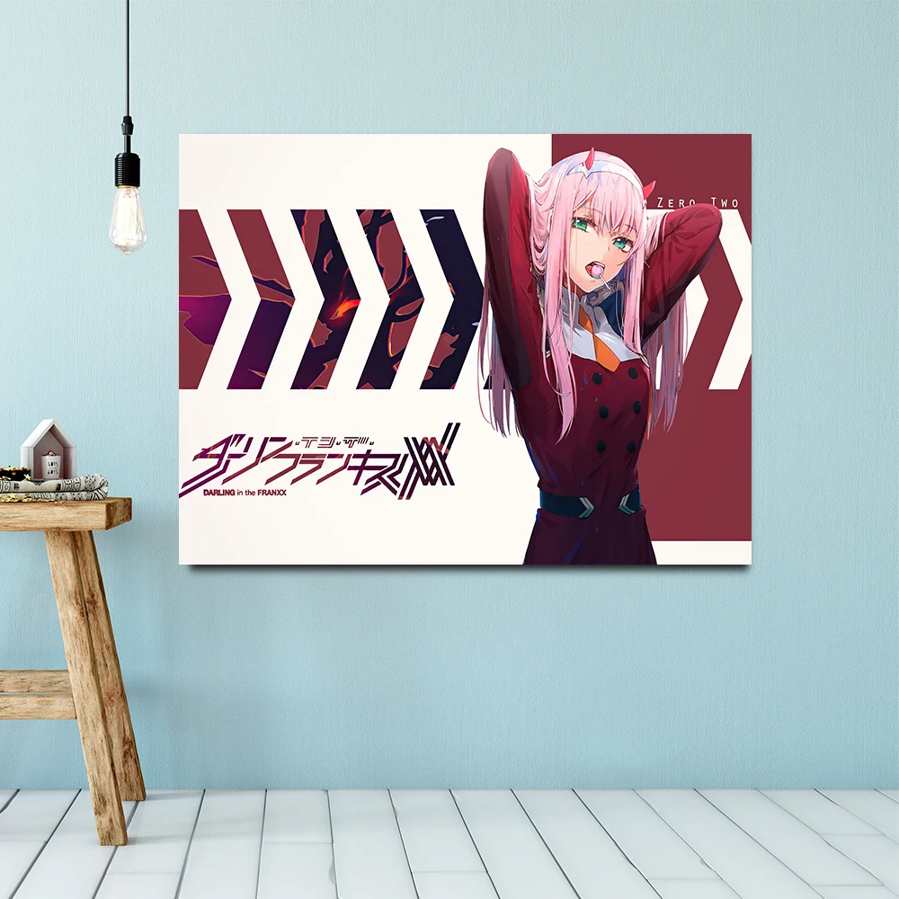 Картина на холсте Zero Two Canvas, Декор для дома, японские аниме картины, настенные художественные принты, основной персонаж, плакат, модульный