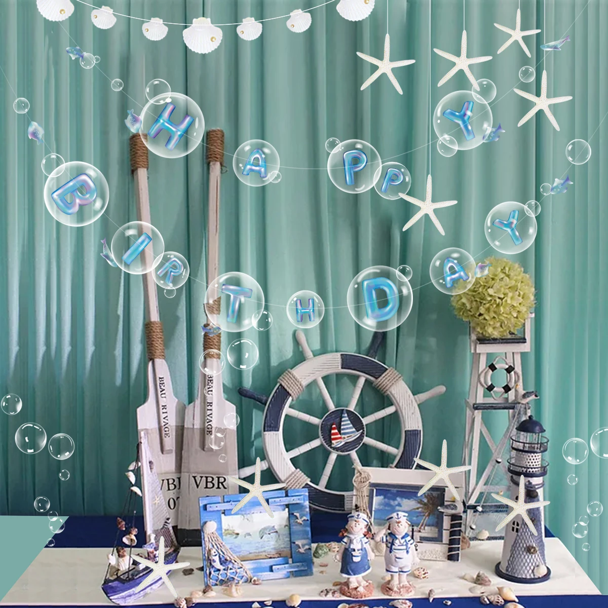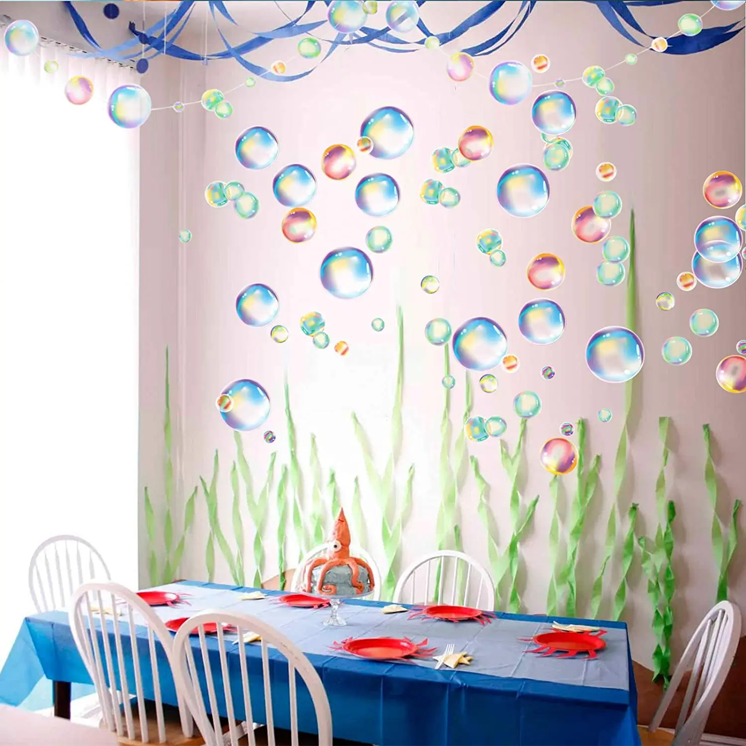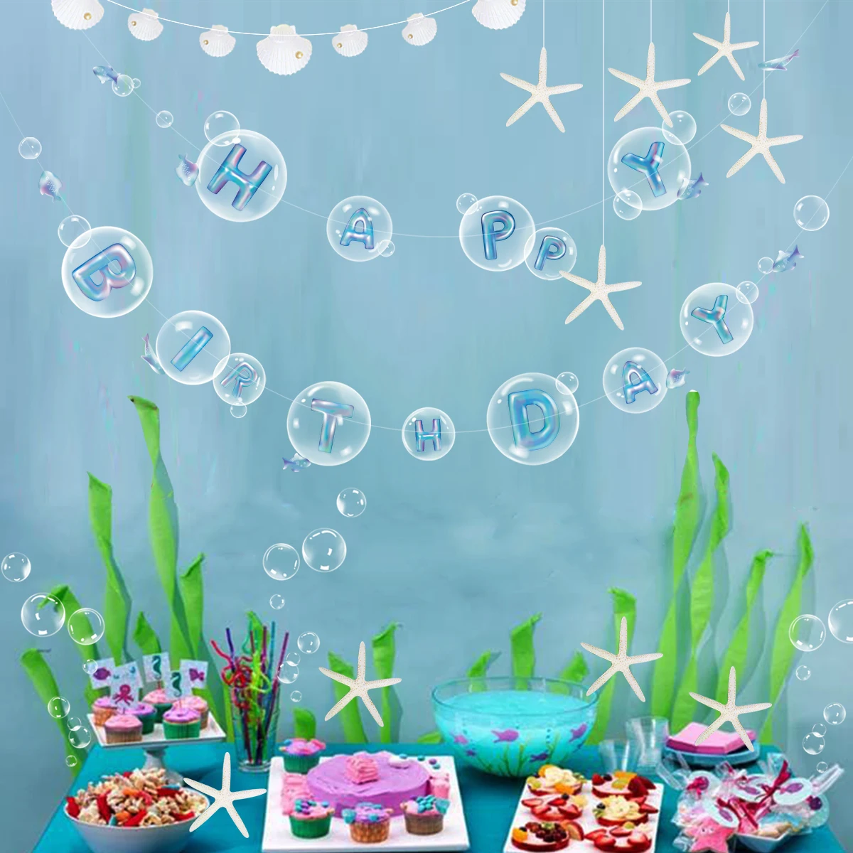 Под морем, голубые рыбы, ПВХ, прозрачные пузырьки, счастливая фотопузырьковая наклейка, Русалка, украшения для дня рождения