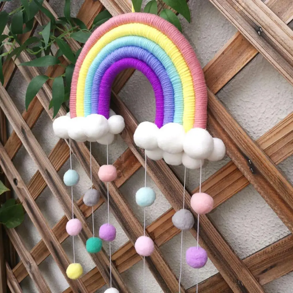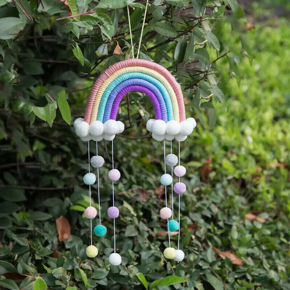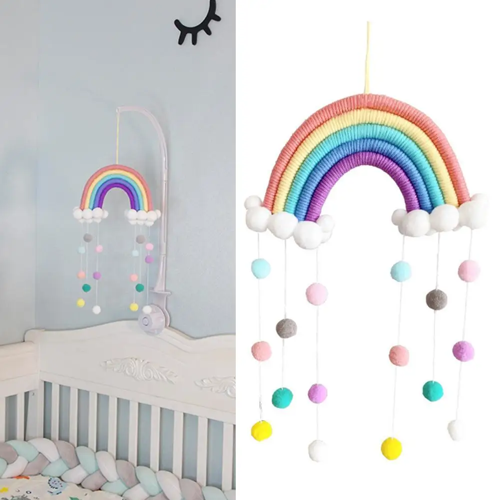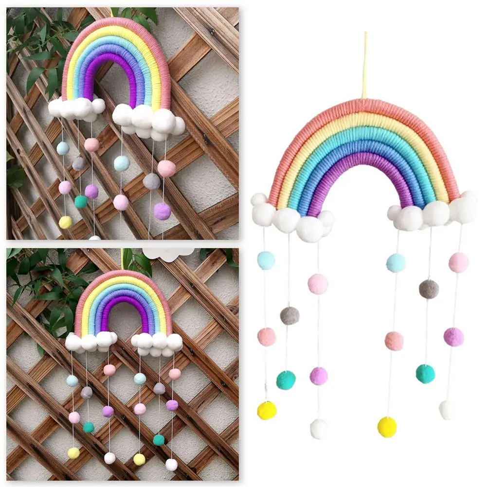 Подвеска в виде радужного шара для детской комнаты, плетеный орнамент для балкона, домашний Настенный декор, ручная работа, Радужный дизайн, висячий орнамент