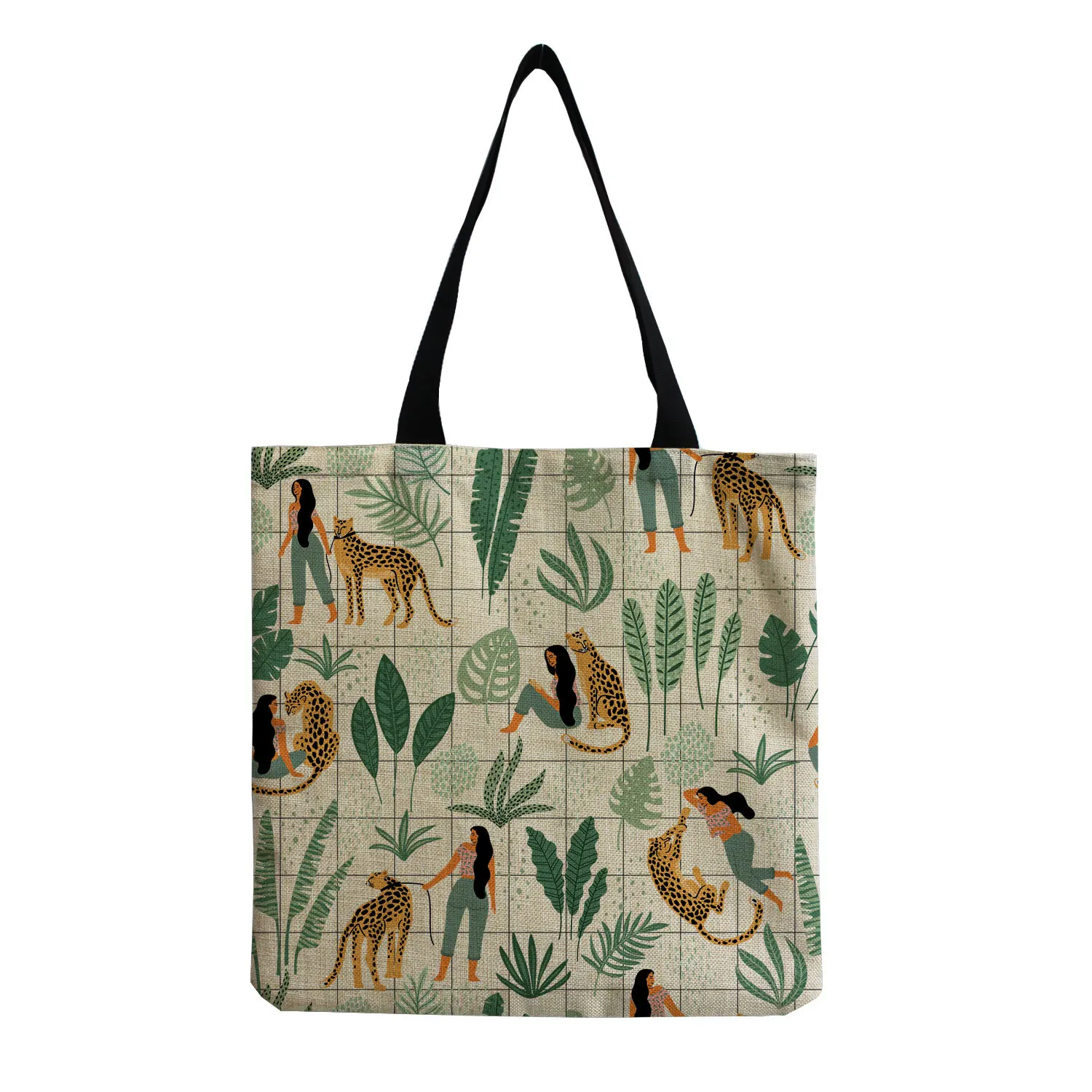 Повседневная многоразовая женская сумка для покупок из льняной ткан...