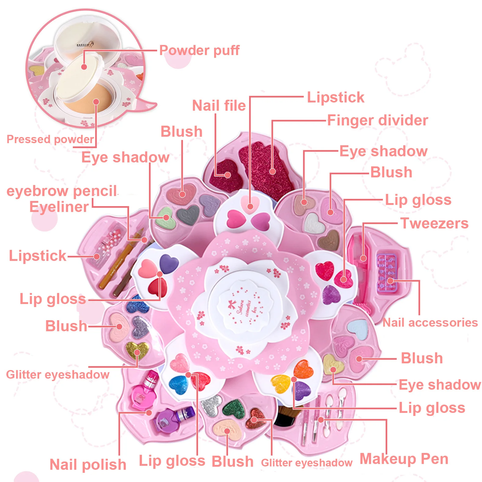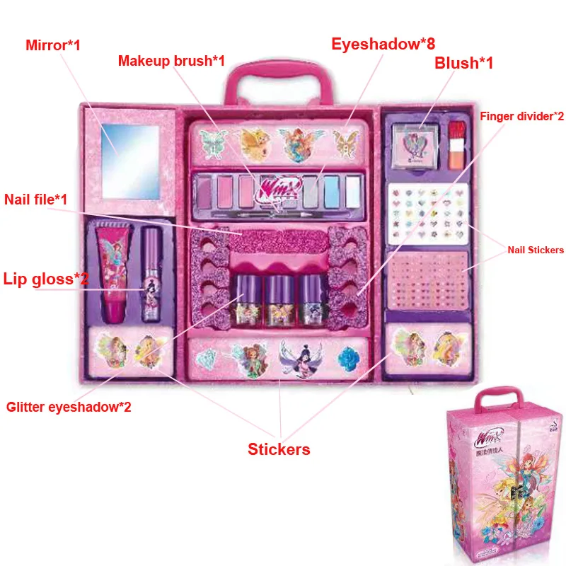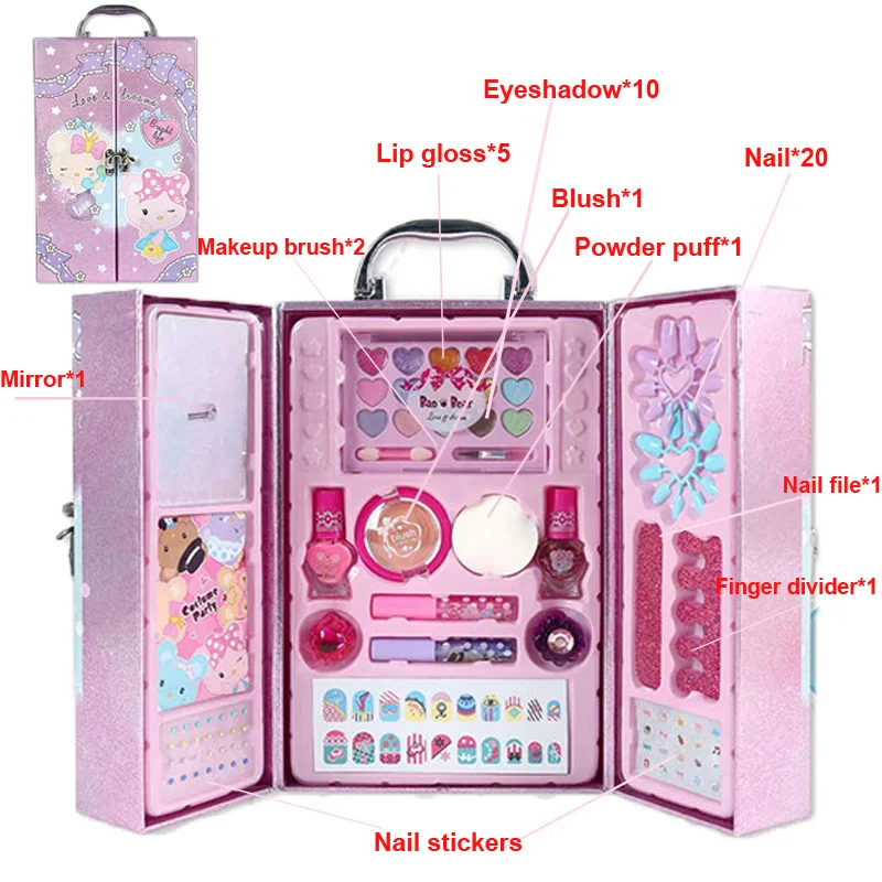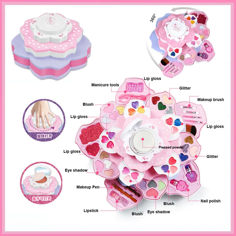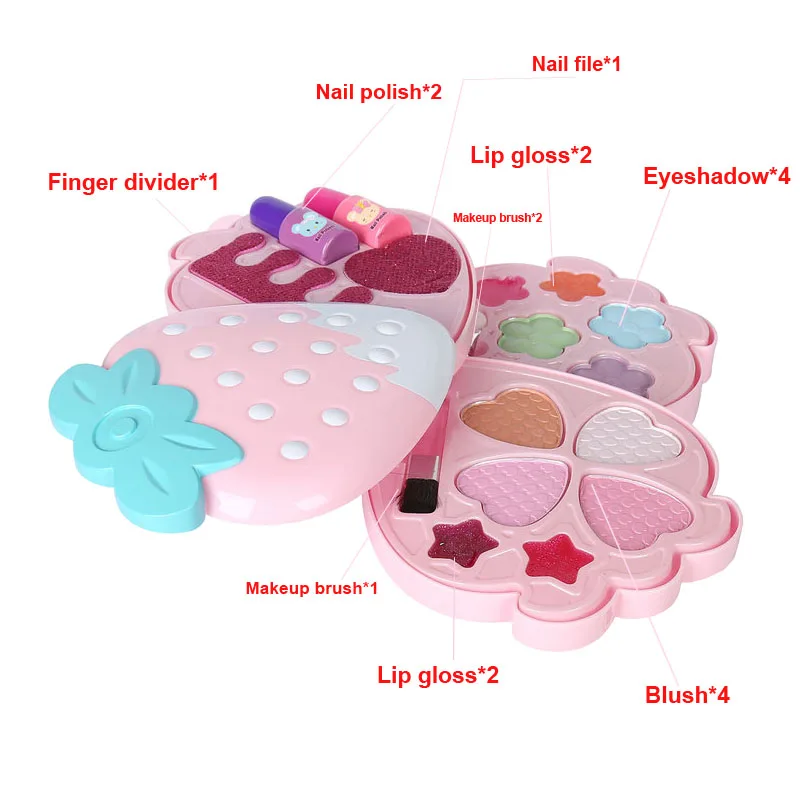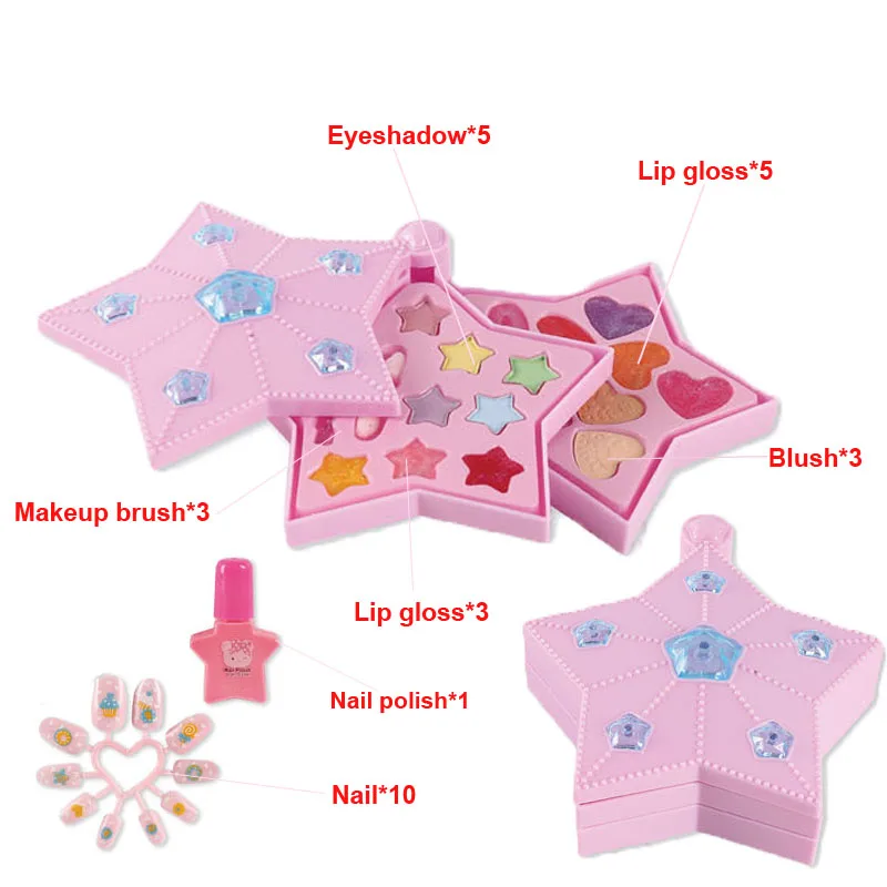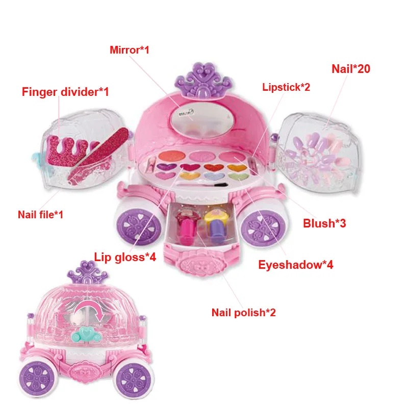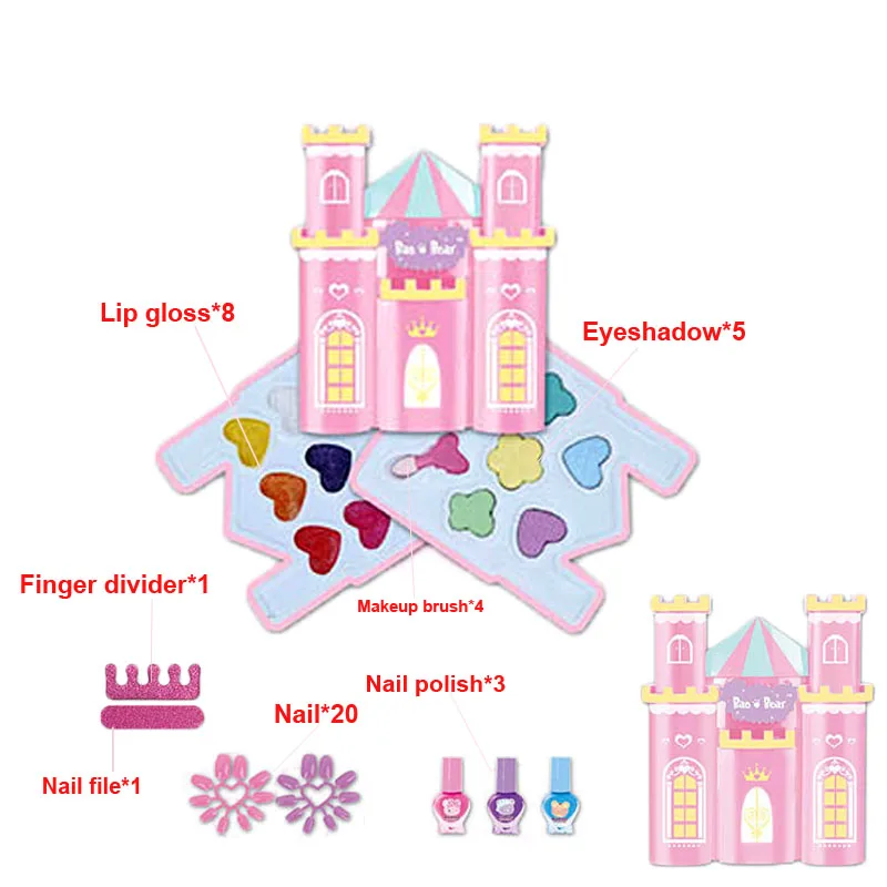 Безопасный моющийся косметический набор для девочек, тени для век принцессы, косметика, ролевая игра, розовое сияющее платье, модные игрушки для детей