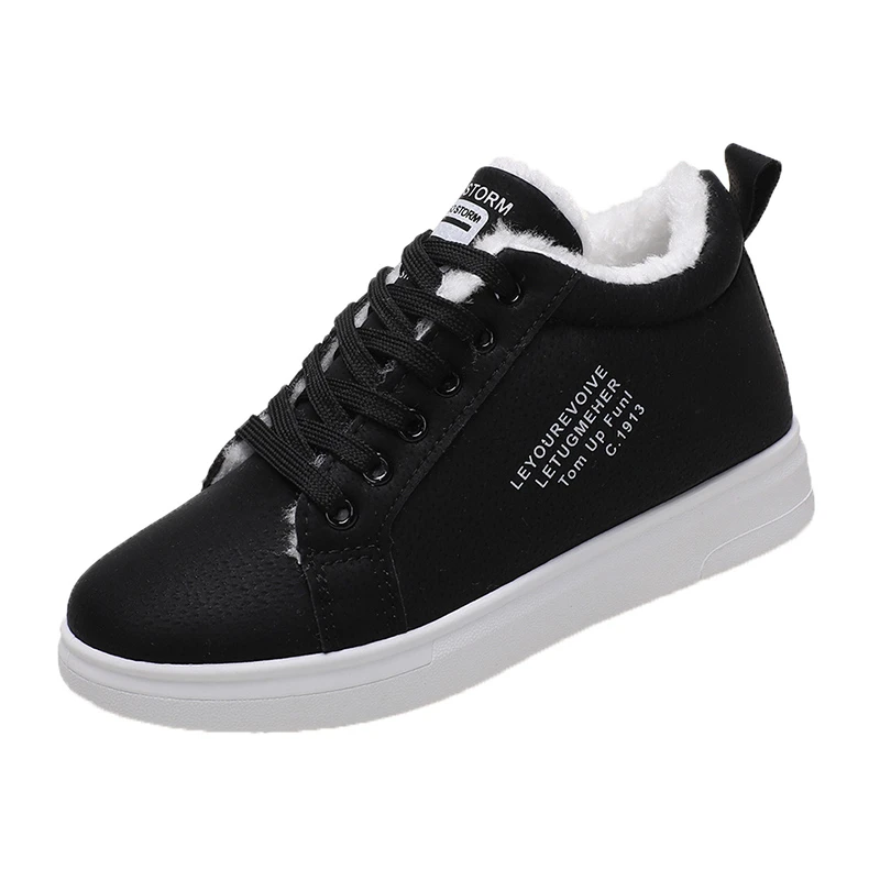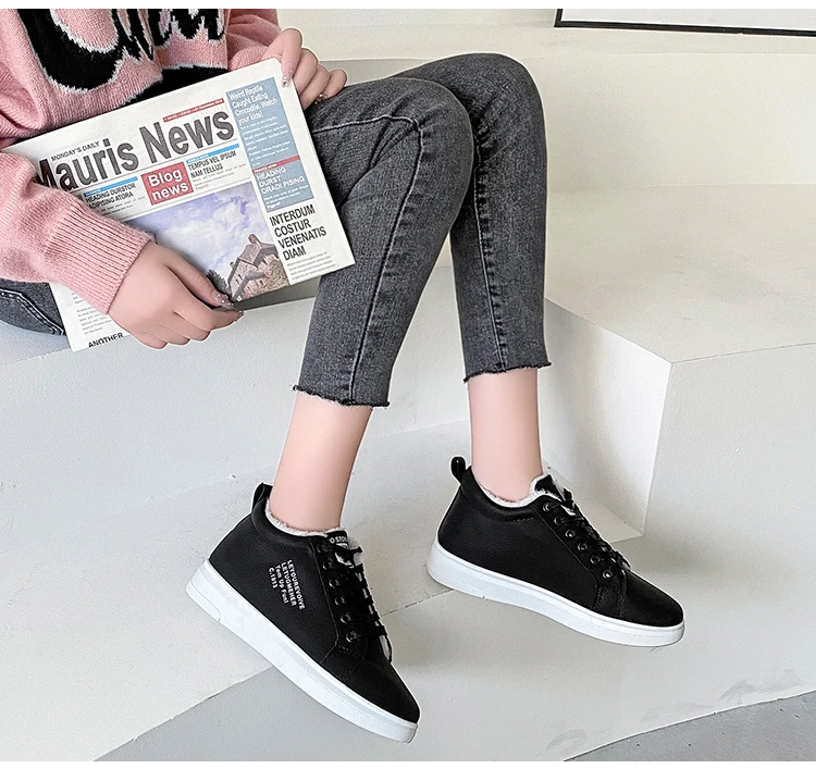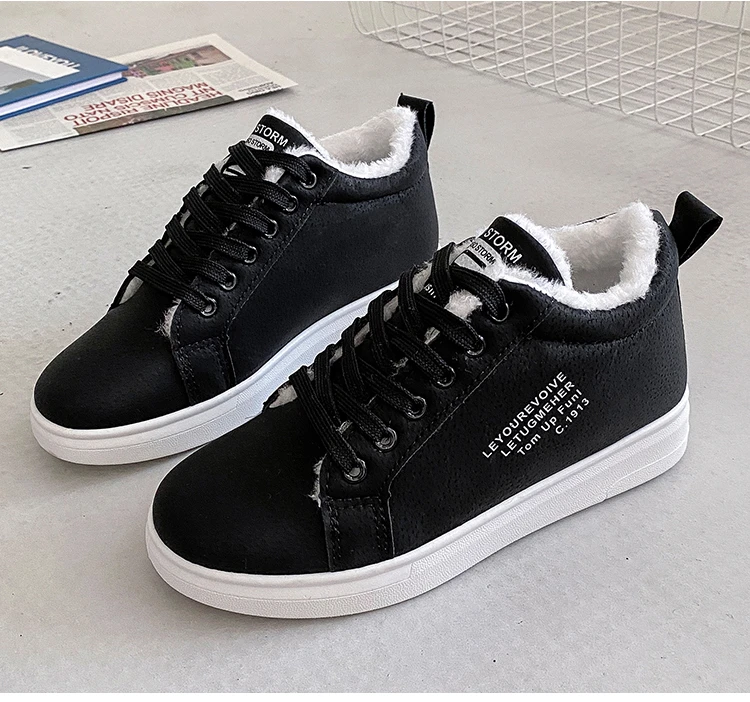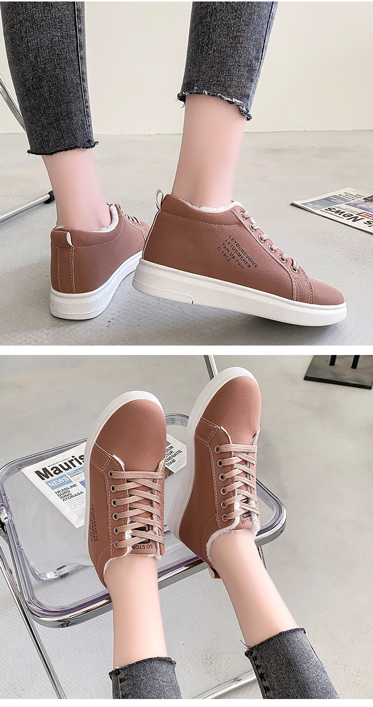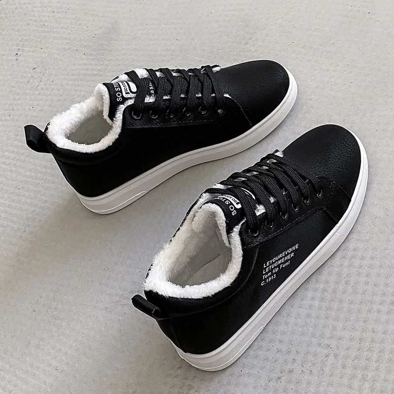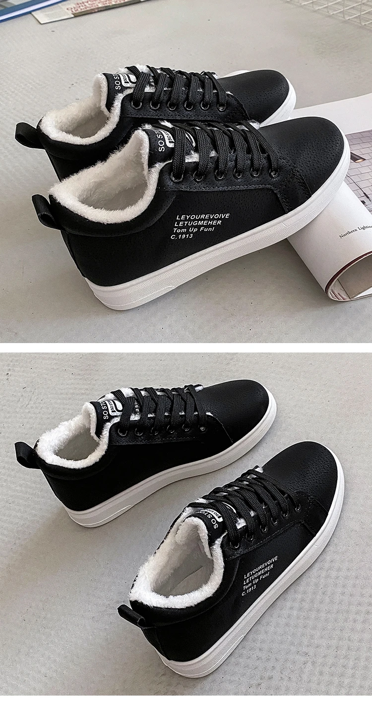Женские теплые плюшевые кроссовки, повседневные однотонные туфли из ПУ кожи, на шнуровке, зимняя обувь на платформе, 2021