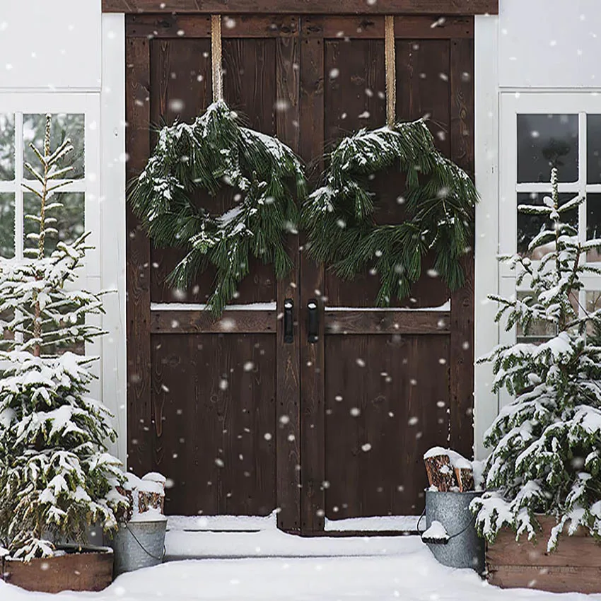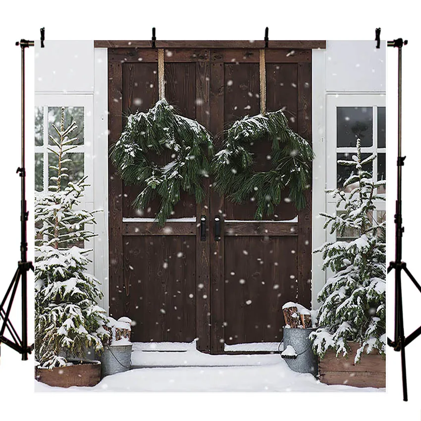 Фон для фотографий Mehofond, зима, Рождество, винтажная дверь, снег, сосна, дети, семейный портрет, декоративный фон