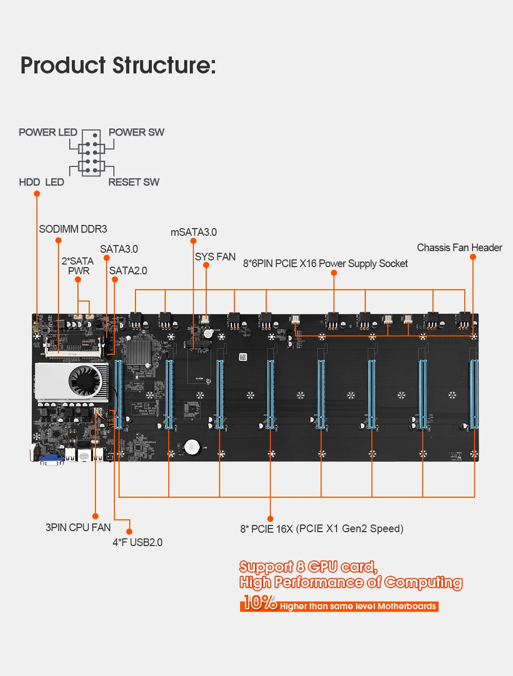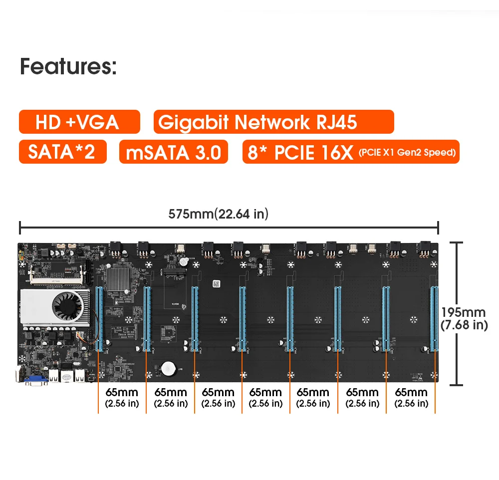 Набор материнской платы для майнинга BTC S37 MSATA SATA 1600 МГц ОЗУ 48 ГБ DDR3 128 Гб SSD 8Pin кабель питания 8 GPU графическая карта Майнер