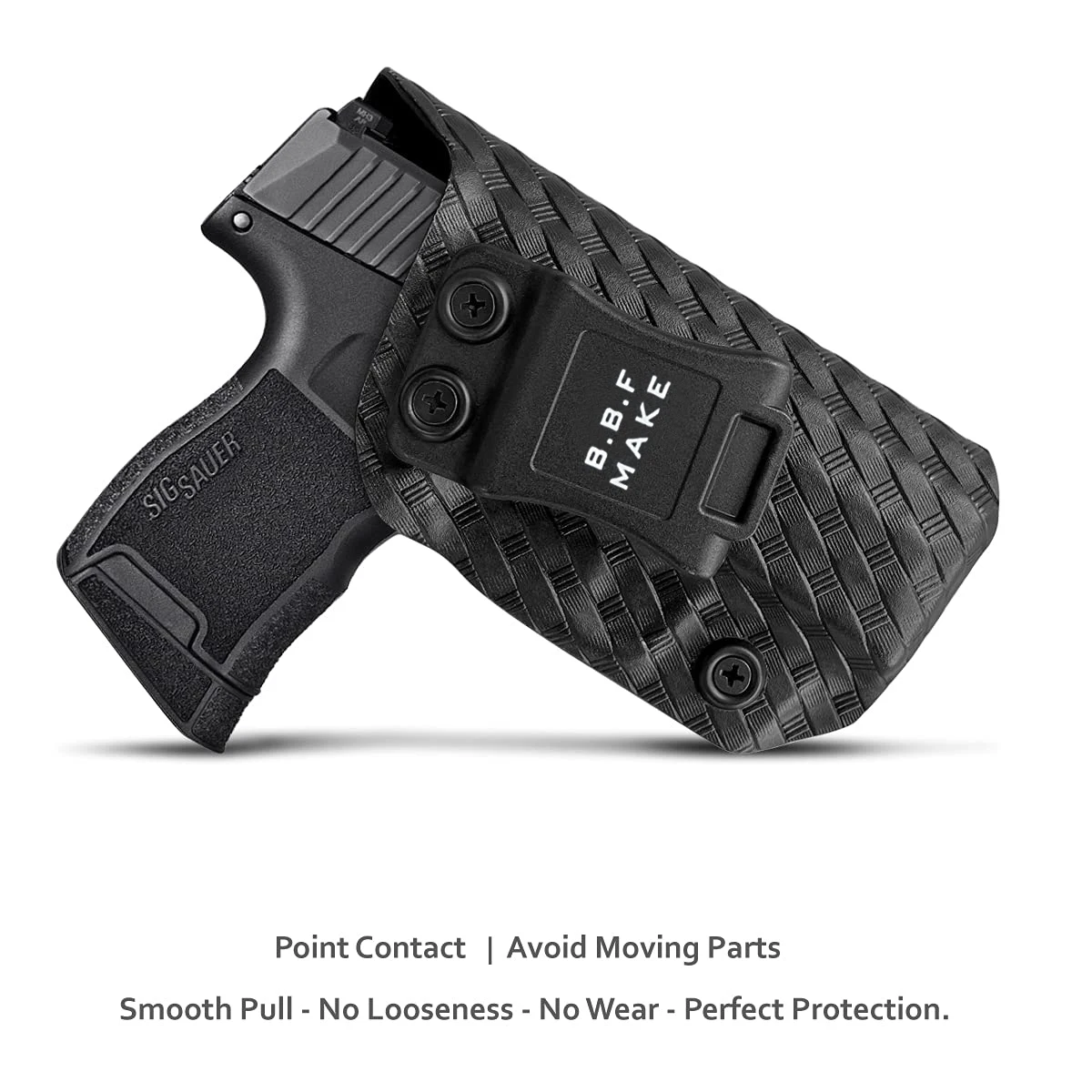 US .08 ”углеродное волокно KYDEX ручной работы: легкий, прочный, прочный, влагозащищенный и моющийся, обеспечивает комфорт и уверенность в любой ситуации. P365 кобура охватывает весь корпус, эффективно предотвращая пот и избегая зажимов одежда может быть безопасно и безопасно использована.
