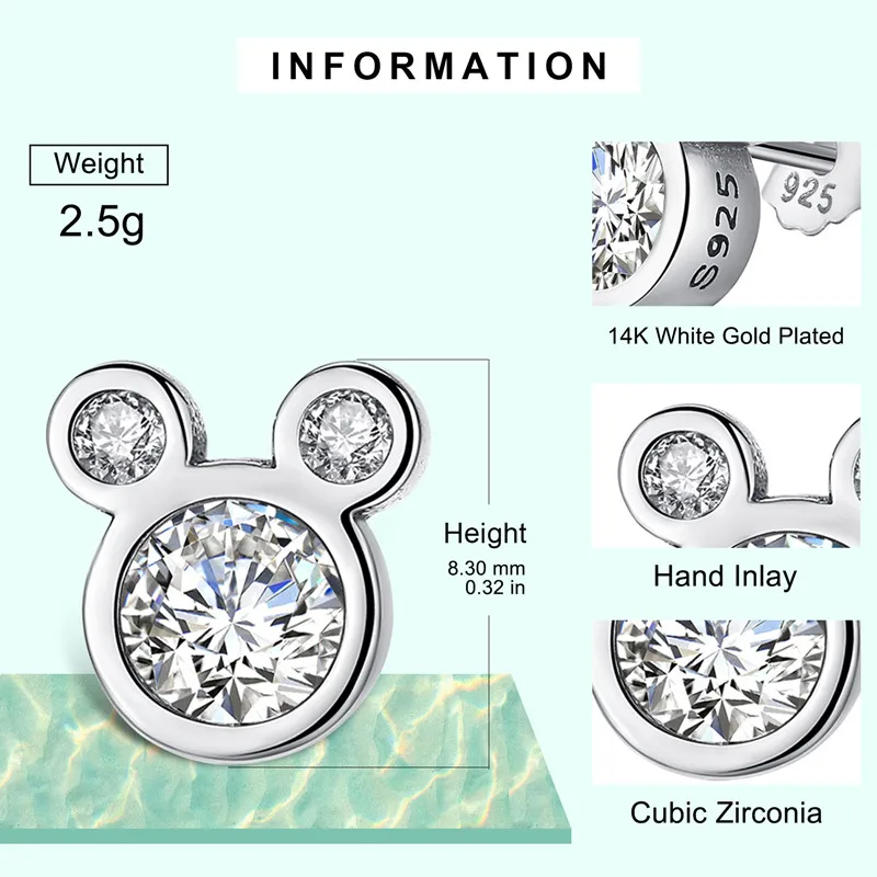Пара, посеребренные трендовые серьги-гвоздики 2021 пробы, серебро, циркон, животные, каваи, мультяшная мышь, пирсинг, серьги, подарок, ювелирные изделия для женщин Опишите:Цвет: серебристыйВес: 3,3 гМатериал: посеребренныйРазмер: 1.03cmX1.09cmПраздничный подарок: День Святого Валентина/День рождения/годовщина Упаковка:Пара наушников