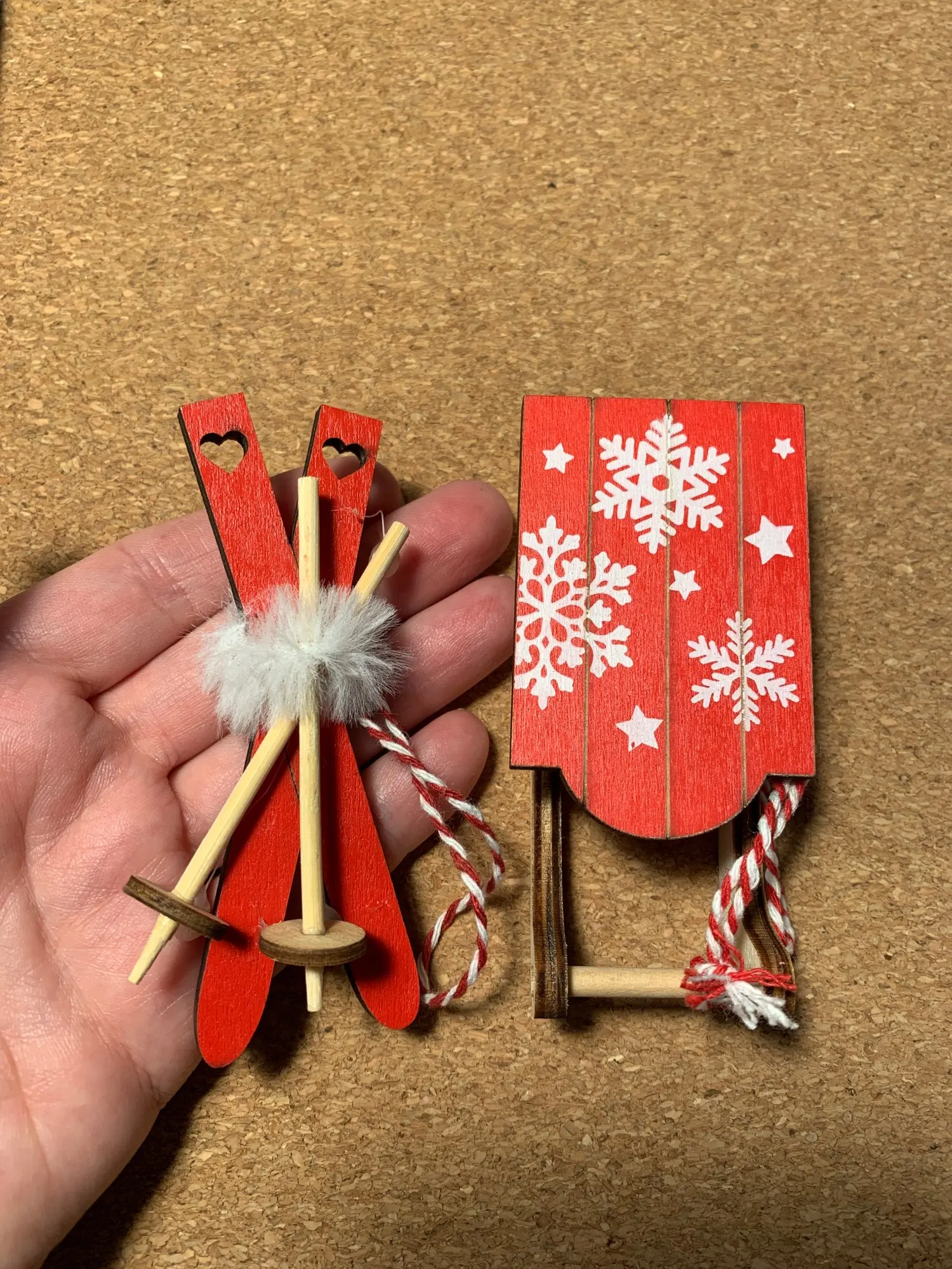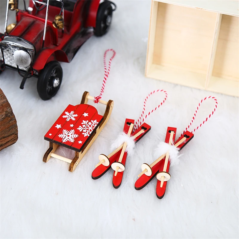 Деревянные подвесные украшения в виде санок на новый год 2022