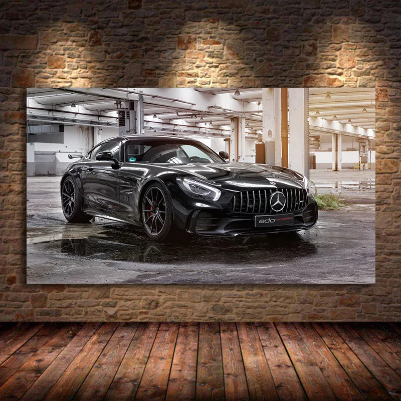 Современный черный автомобиль Mercedes AMG GTR суперкар плакаты и принты шелковая настенная Картина на холсте украшение для гостиной без рамки