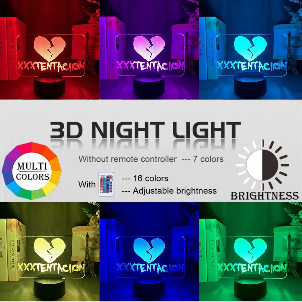 3d-иллюзионная лампа с сенсорным выключателем, американский рэпер XXXTentacion, иконка, сердце, разбитое украшение, ночник для девочек, подарок, настольная лампа